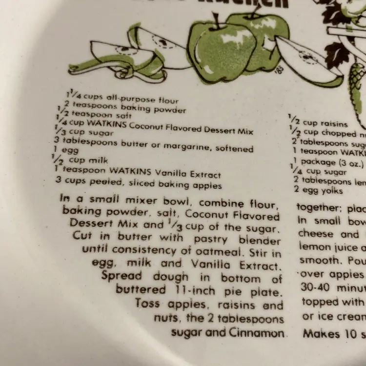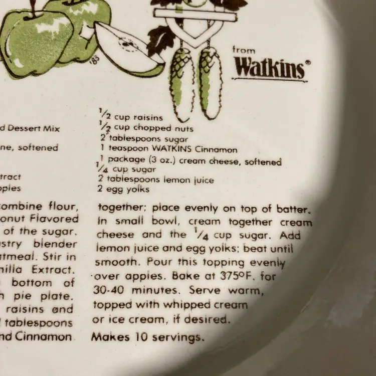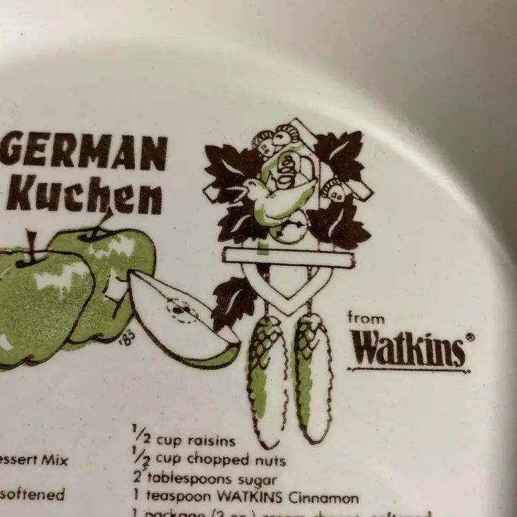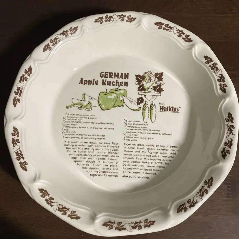 Vtg Watkins German Apple Kuchen Pie Dish Plate Pan 1983 USA #6480