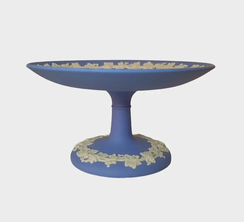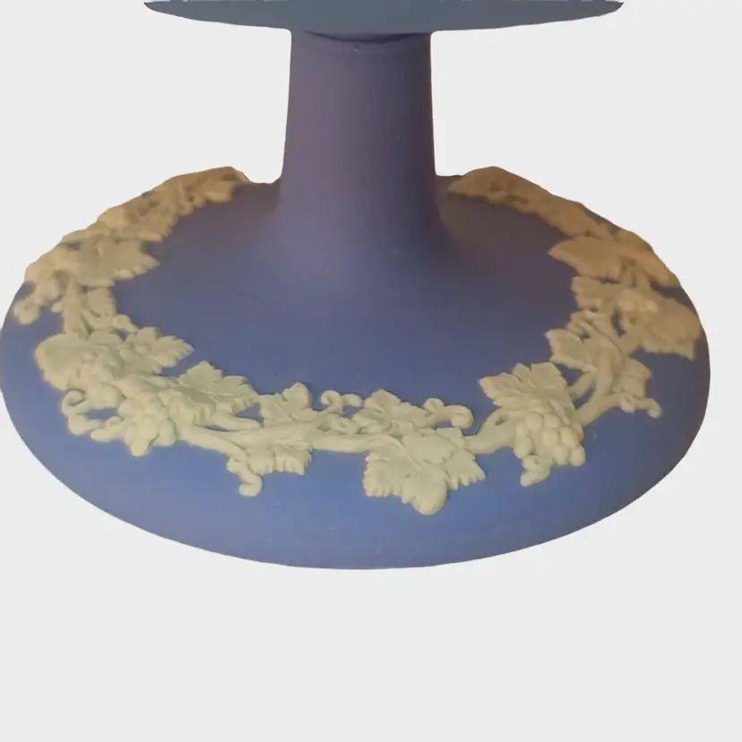 – Pattern: Grapevine – Color: Blue & White – Material: Jasperware – Item Length: See photos for measurements – Vintage: Yes – Brand: Wedgwood – Type: Candy Dish – Item Height: See Photos for dimensions – Model: Grapevine Pedestal – Production Style: Jasperware – Time Period Manufactured: 1970-1979 – Country/Region of Manufacture: United Kingdom – Finish: Matte – Product Line: Jasperware