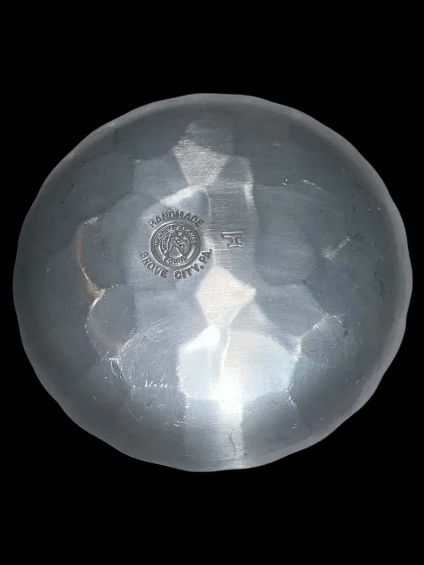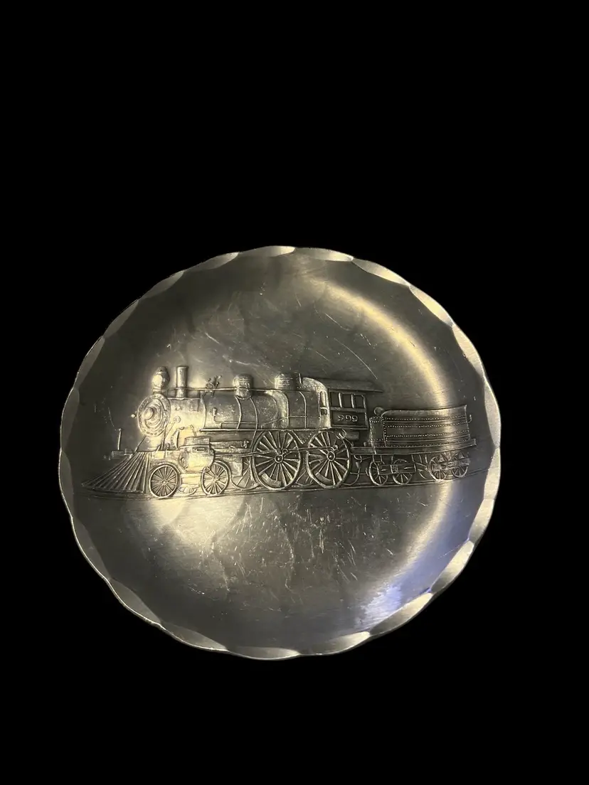 This is a vintage Wendell August Forge dish coaster featuring a design of the Empire State Express train. Handmade in the United States, this aluminum dish measures 4.5 inches in diameter.