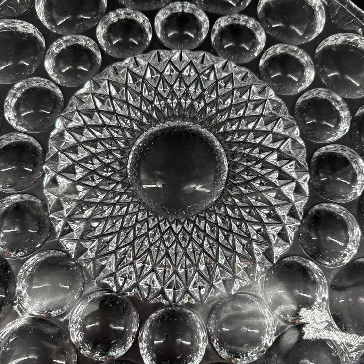 It measures 13" in diameter and is in great condition. There are no cracks, breaks, chips or repairs. There are some surface marks from age and use. (See photos).