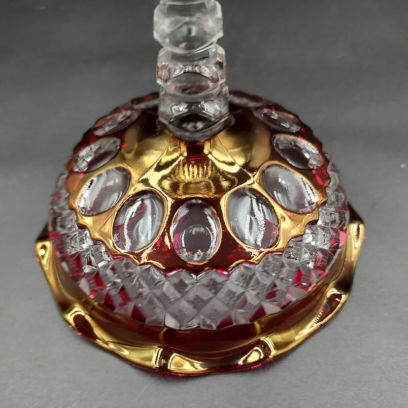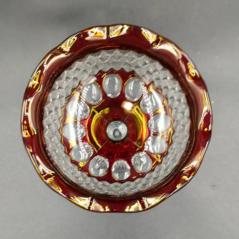 Vintage 1932 Westmoreland Glass Compote Wakefield Pattern Ruby Red Flashed Glass. Height 4.5" x diameter 5". Holds 6 oz. Made in the USA
