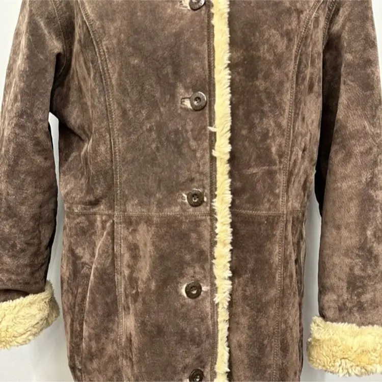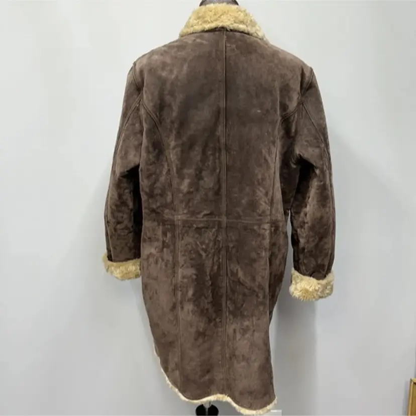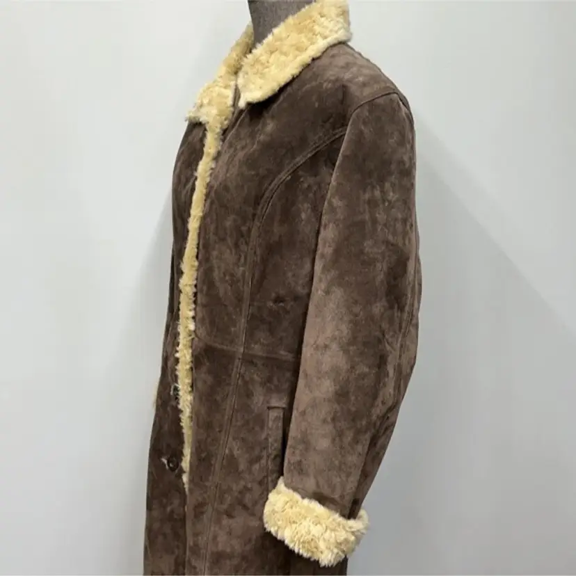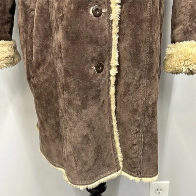 Vtg Wilson's Leather Brown Suede Coat XL Sherpa Lined Stadium Length Button Up