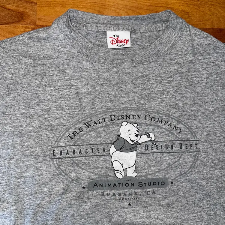 This vintage Winnie the Pooh T-shirt from The Walt Disney Company's Disney Store features a classic round neck and short sleeves, made from cotton fabric in a stylish grey color. The shirt showcases the beloved Winnie the Pooh character, with accents that capture the essence of the lovable bear. Perfect for fans of Disney animation, this regular fit T-shirt in size L is a nostalgic piece of nostalgia that showcases a timeless part of the Disney legacy.