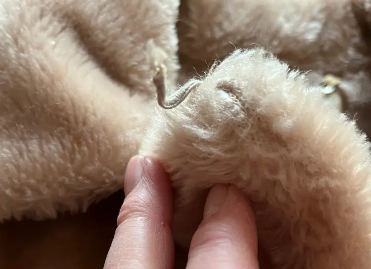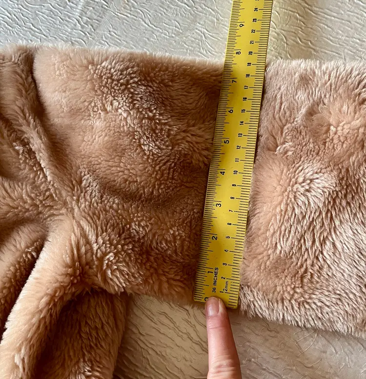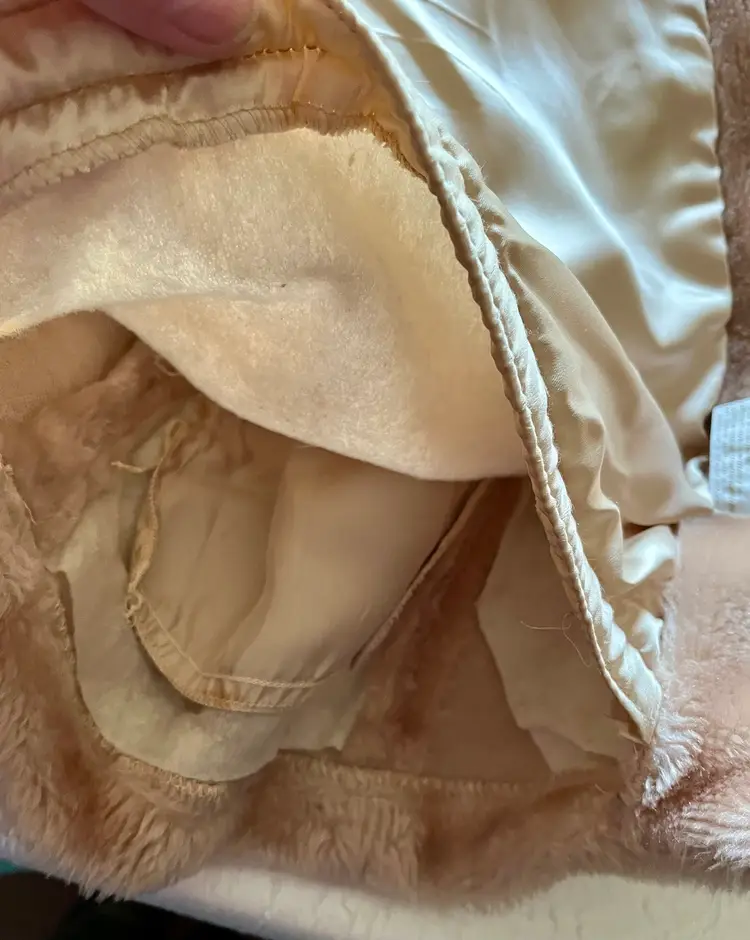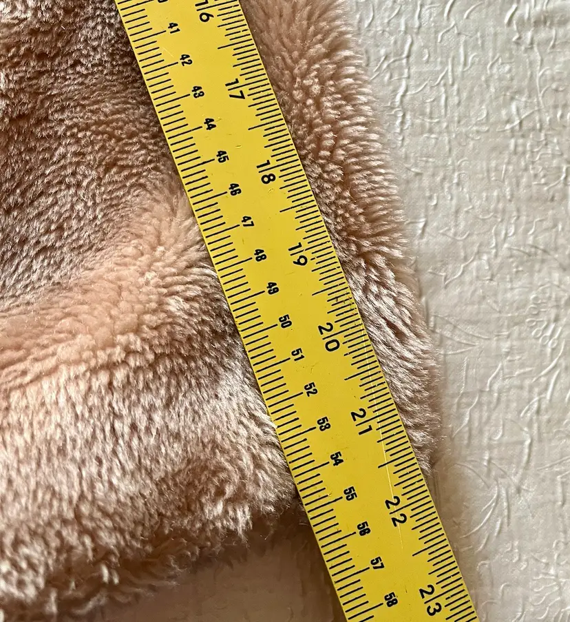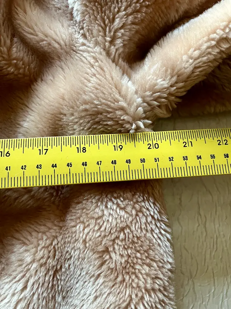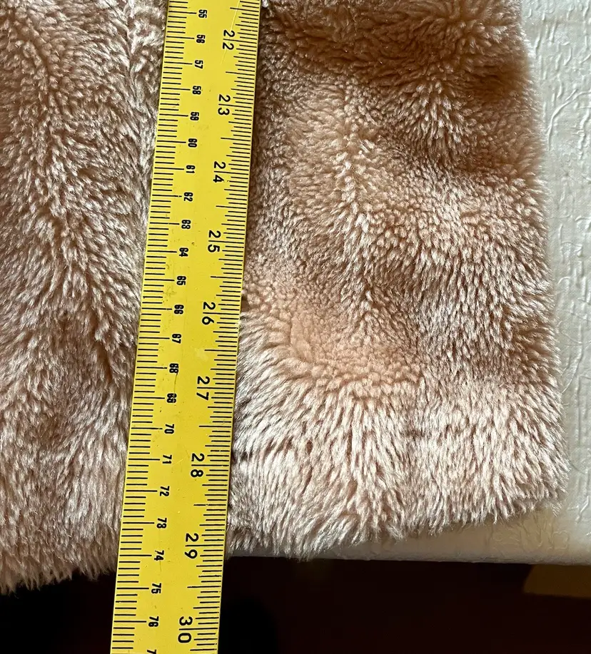 The beige-champagne color of the coat is versatile and can be paired with a variety of outfits. The full lining material is possibly polyester or acetate (satin-like) and adds a touch of luxury to the coat. This coat is a size small/medium and has a regular fit. It is recommended to dry clean only to maintain its quality. There are two front lined pockets as well.