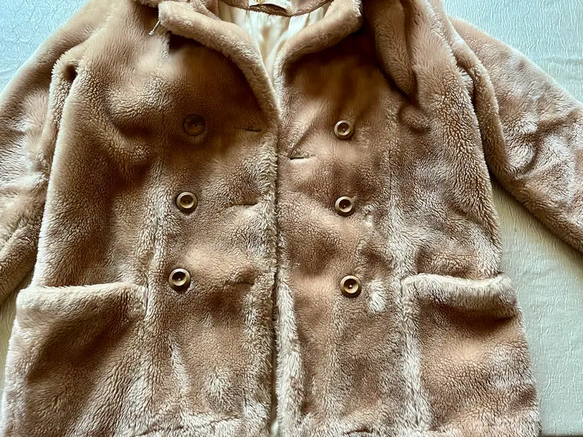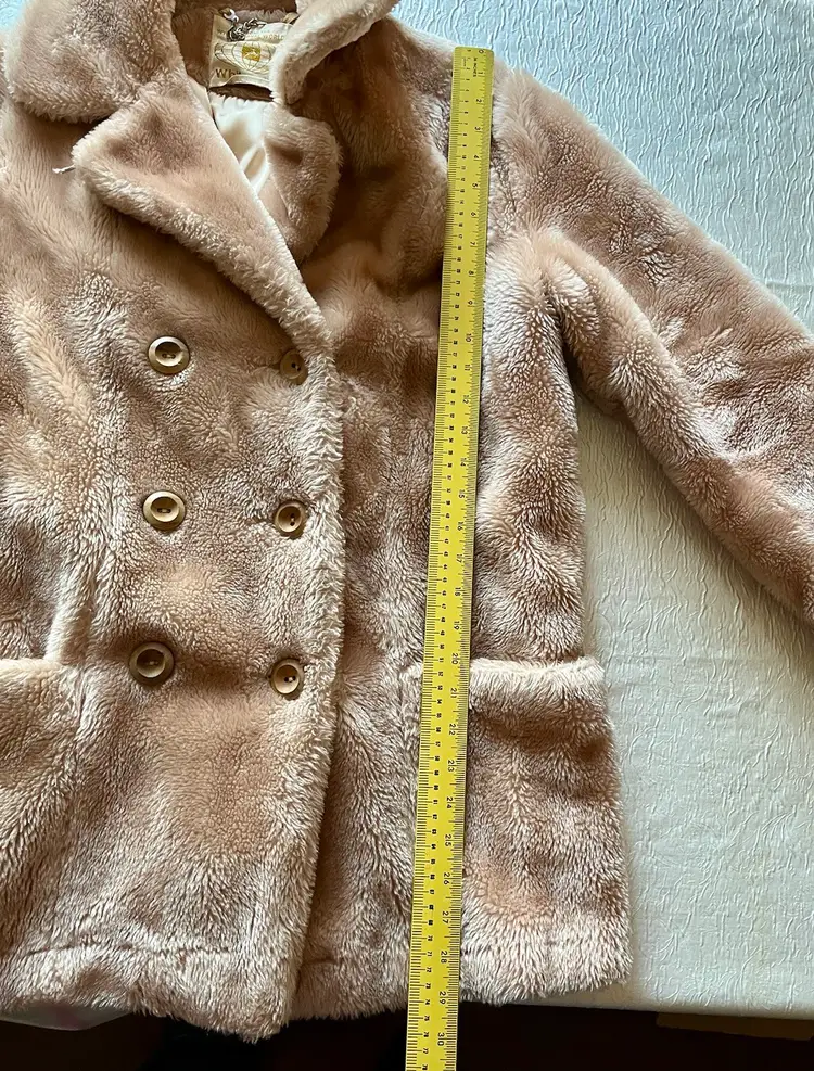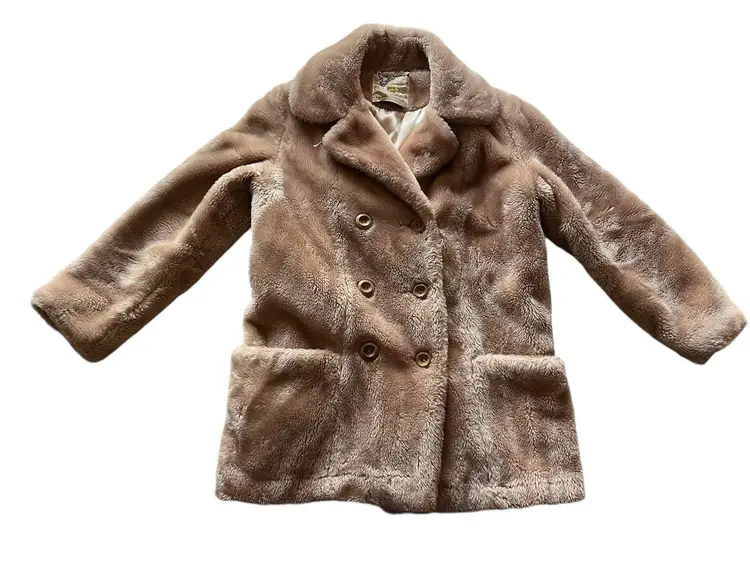 This vintage women's coat from the 1960s-1980s has a classic style that is perfect for any occasion. The faux fur outer shell material is soft and warm, making it a great choice for winter, fall, and spring. The coat features a button closure, long sleeves, and a mid-length jacket/coat length that is perfect for parties, cocktails, casual outings, and formal events.