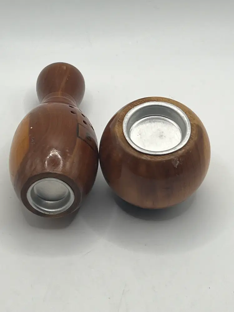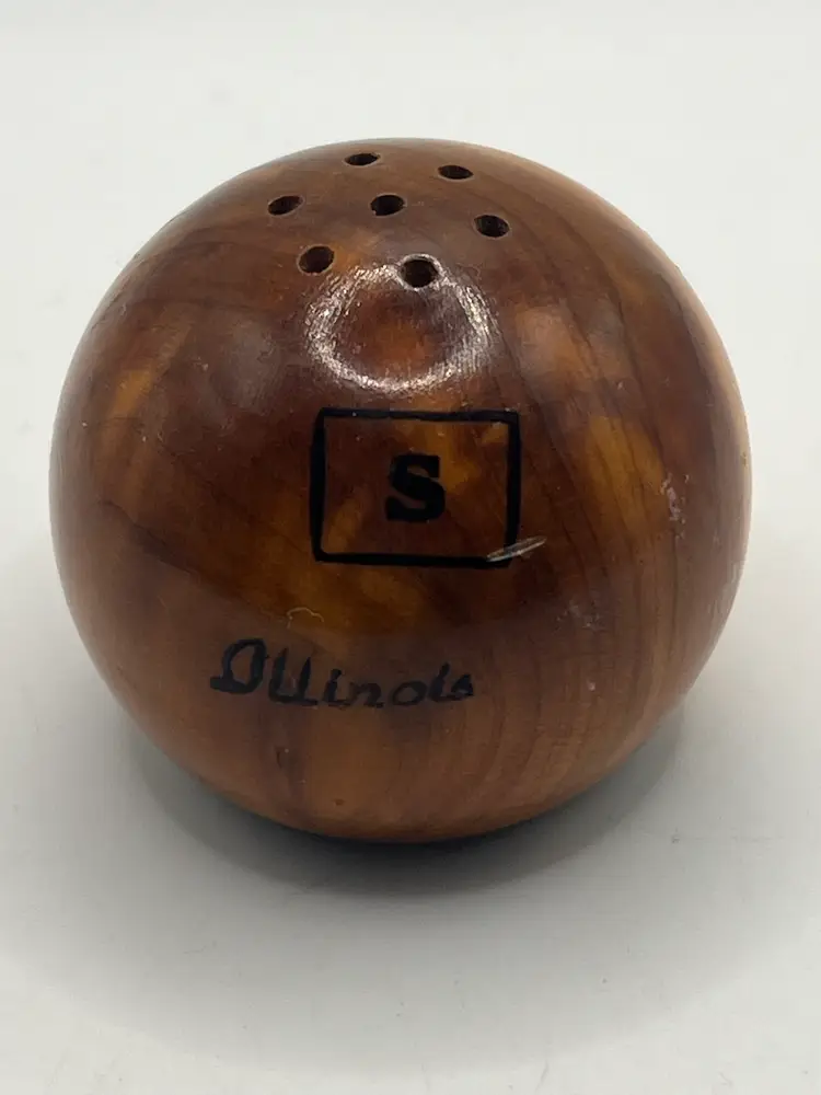 Beautiful wood grain on both pieces. The pin is 3.5” tall, marked with an “S” in a square. The ball is 1.5” tall and also marked with an “S” with “Illinois” underneath. They both have metal stoppers. Any questions, please message me. Thank you