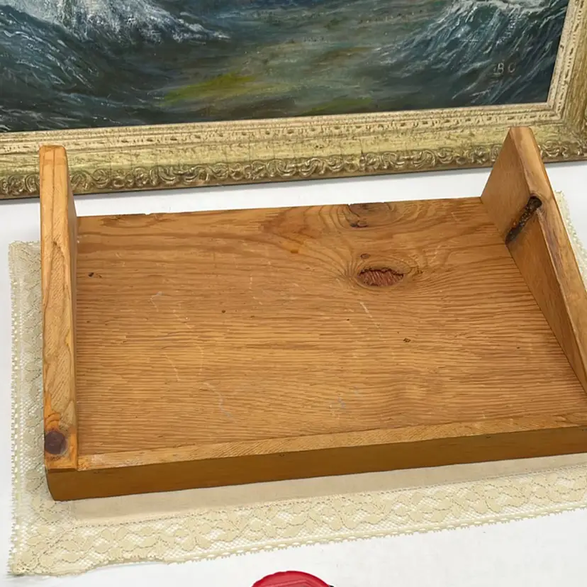 This is an adorable Vtg wood cook book stand. You could also use it to display open pages of Vtg book on your shelves. I love the aged look of the wood!