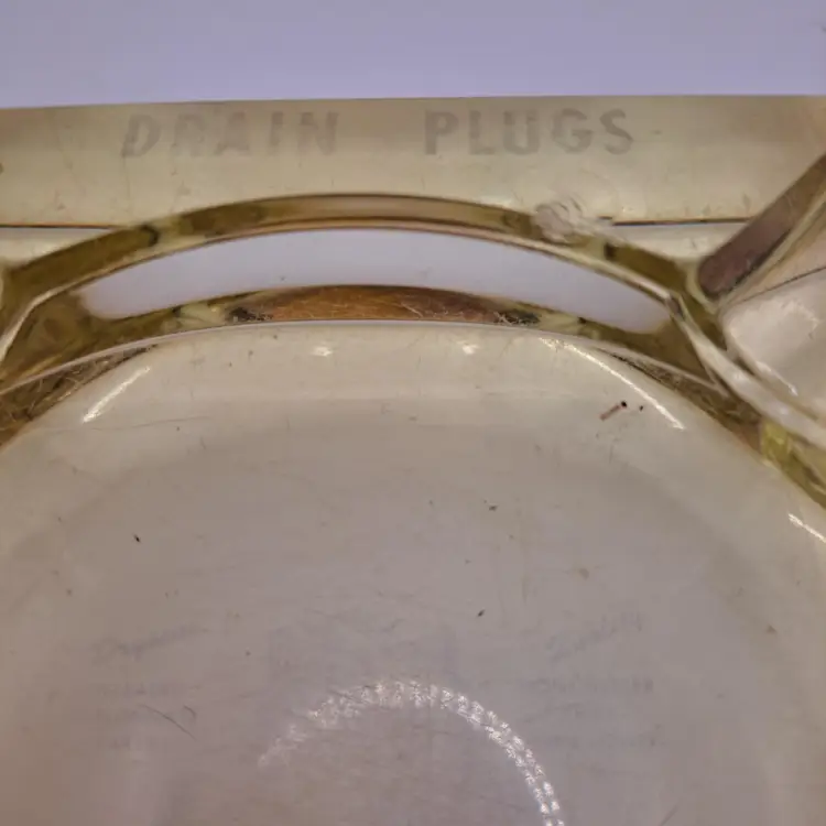 By Pipe Plugs Inc Wellington OH. Chip on inner edge curve noted in pictures that show advertising wording on drain plugs side 5" x 5" x 1.5"
