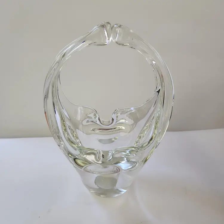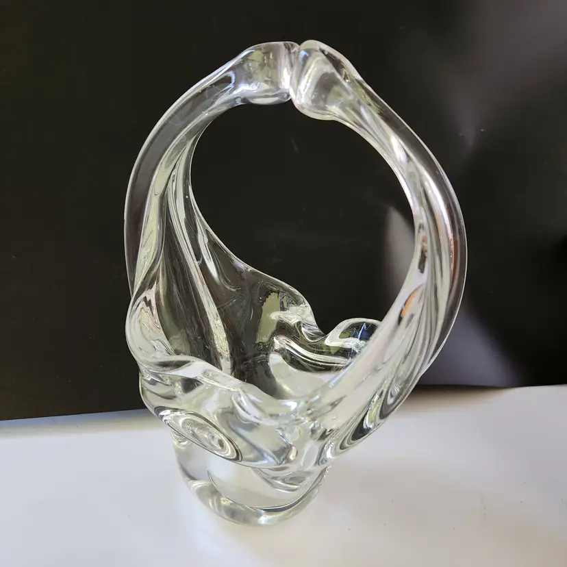 Art Glass Basket with a Split Handle. Stands approximately inches 7" width 5.