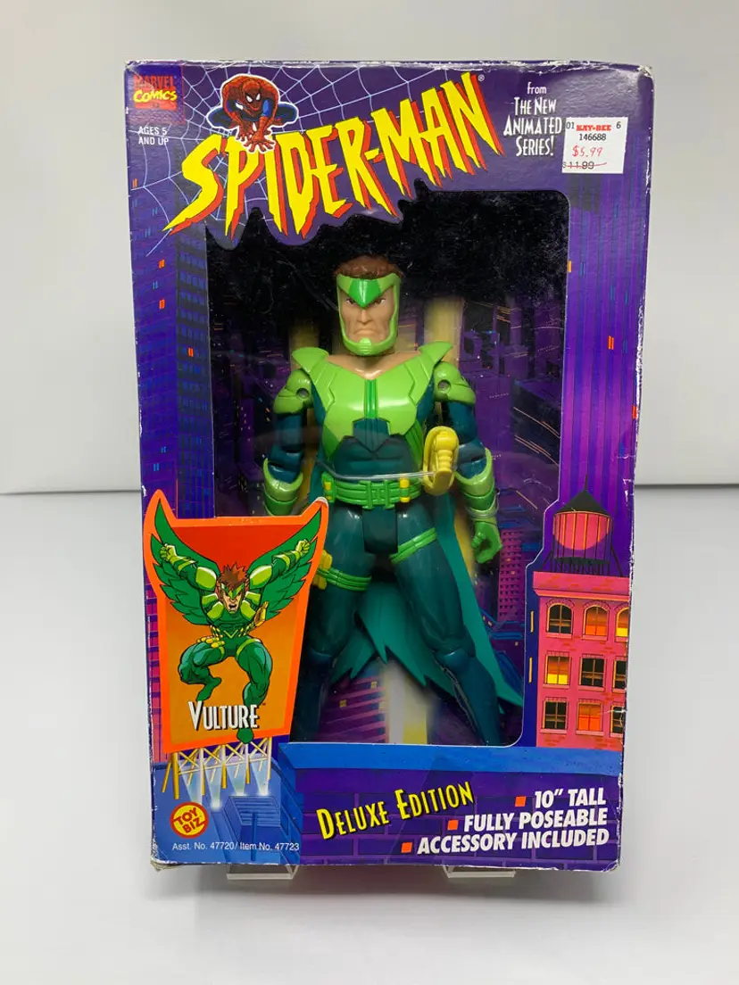 BRAND NEW Vulture 10’ Inch Action Figure from the hit Spider-Man animated tv show on Fox Kids! Vulture was recently played by Michael Keaton in the most recent Spider-man film series, in the film Spider-Man: Far From Home. Get this Original Marvel Universe collectible! This figure was made by Toy Biz and released in 1994.