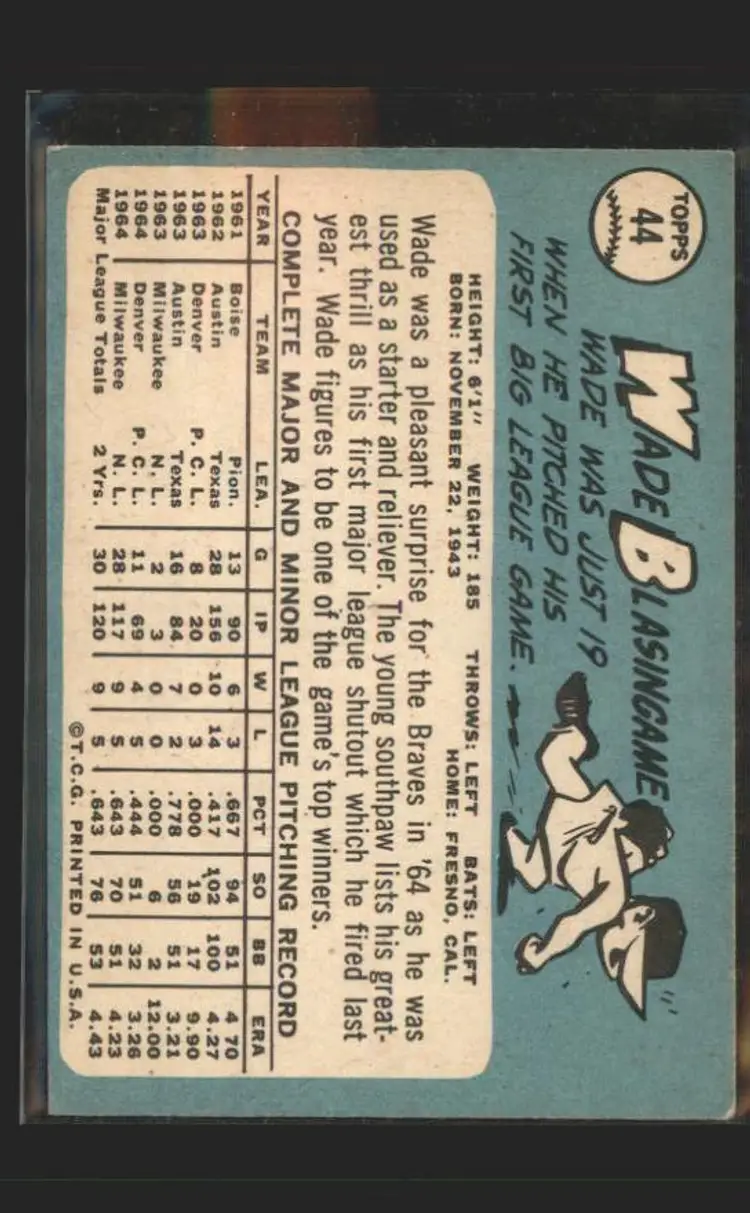 Wade Blasingame 1965 Topps #44 - (140) - Milwaukee Braves