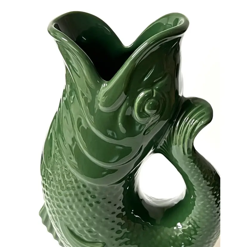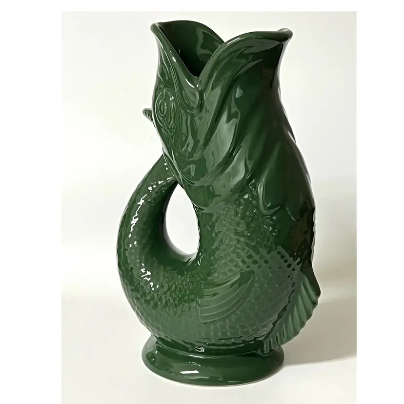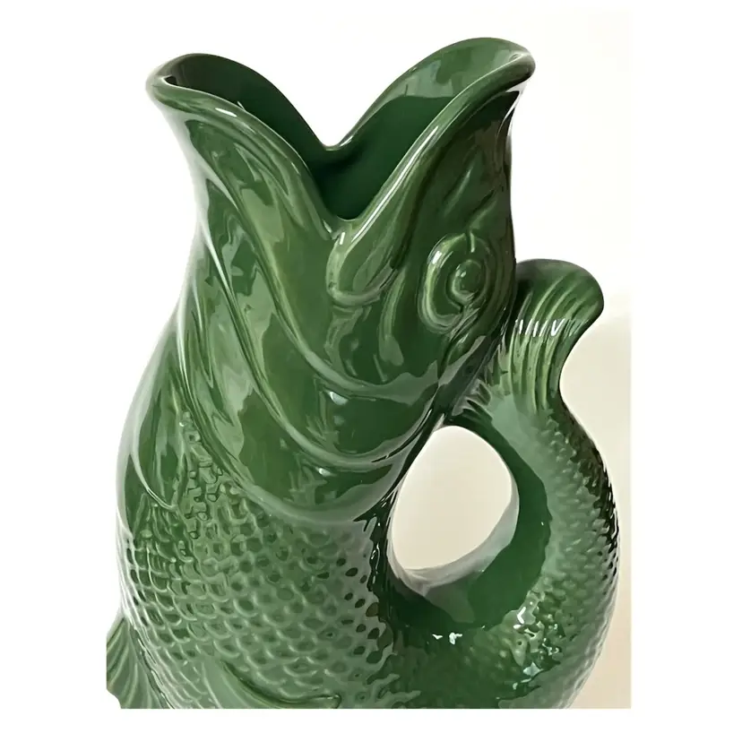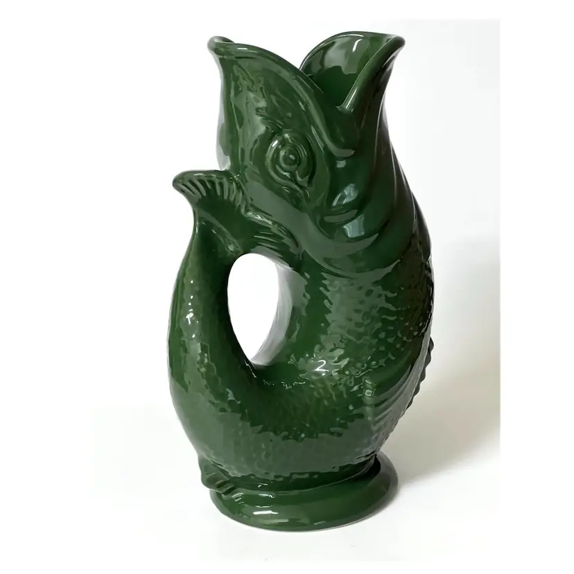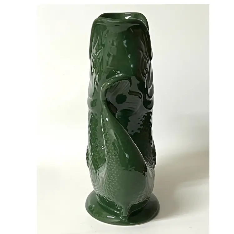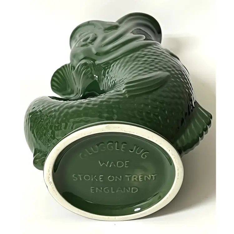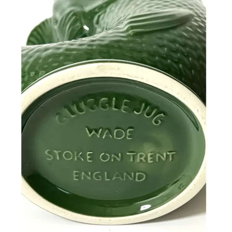 Wade Pottery Ceramic Green Gluggle Jug Pitcher Vase Stock on Trenton England 8.5 in Height, 5.5 in Length, 3 in Width. No chips/cracks