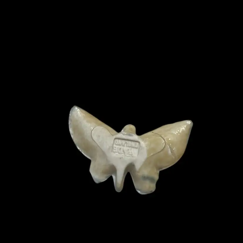 Wade Ceramics is a British pottery company founded in 1810, known for its diverse range of ceramic products, including decorative figurines. They gained significant popularity through collaborations, most notably with Red Rose Tea in North America, where small Wade figurines were included as prizes in tea packages. These promotional items, often referred to as "Wade Whimsies,". These miniature figurines, often depicting animals and whimsical characters, were produced in various colors and designs over several decades. The butterfly motif is a common subject in their collectible lines. The quality of the glaze and the detail in the molding are characteristic of Wade's production standards during the mid to late 20th century, making them sought-after by collectors of both Wade pottery and Red Rose Tea memorabilia.
