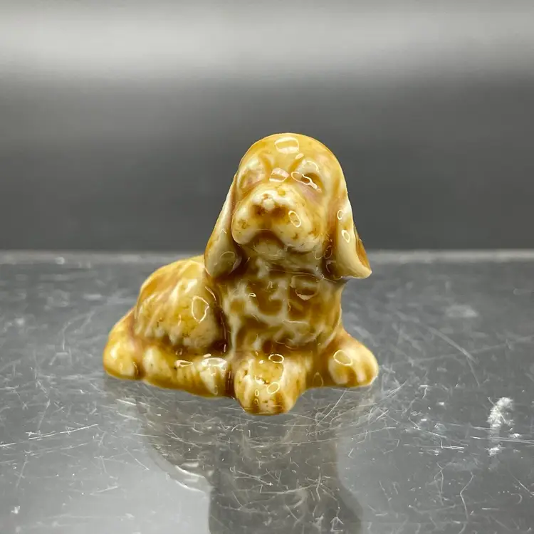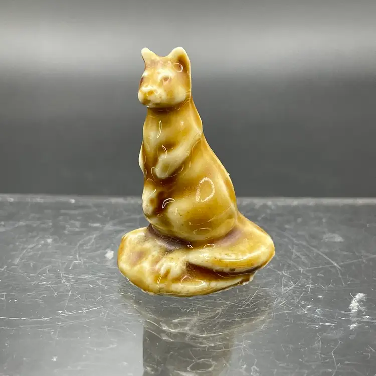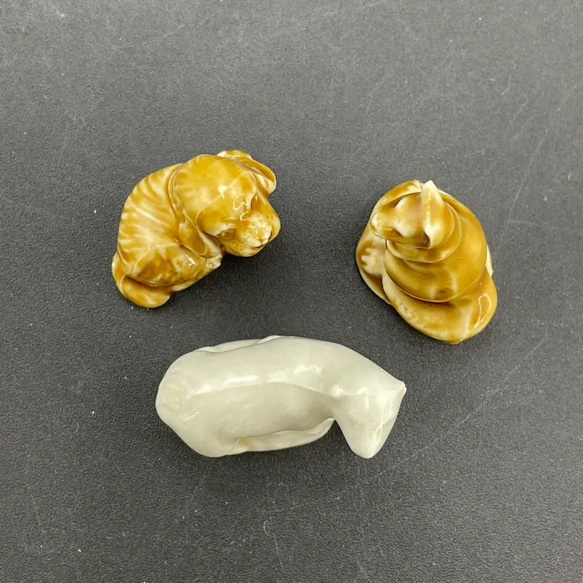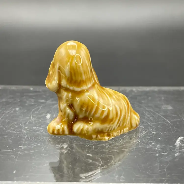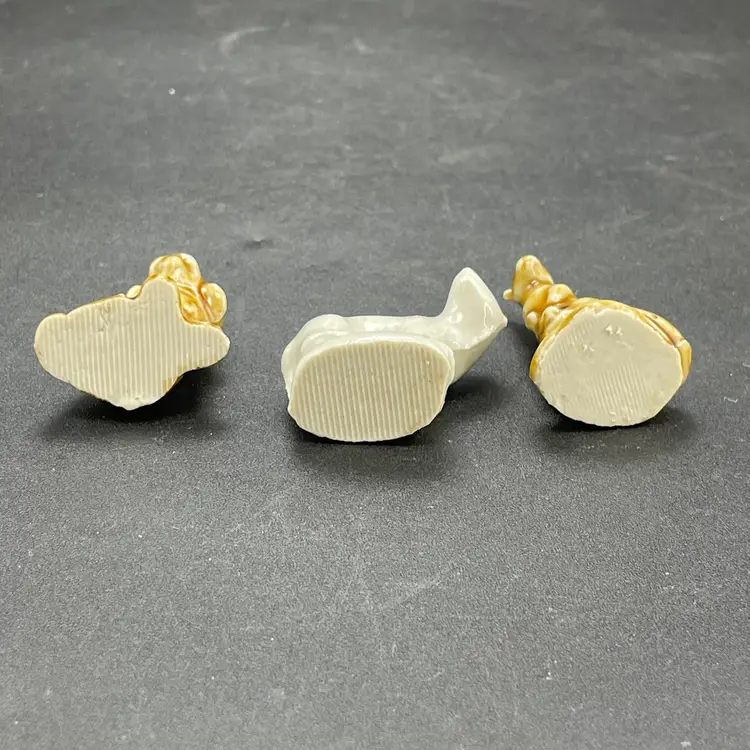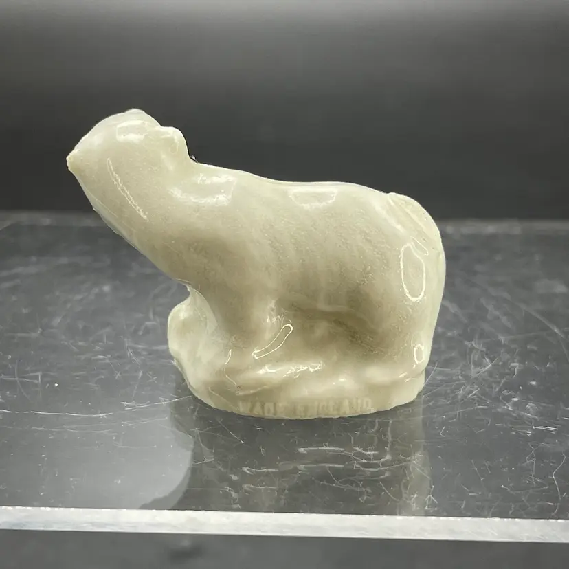 This is a vintage lot of 3 Wade Whimsies porcelain figurines. The lot includes a dog, a polar bear, and a kangaroo. Made in England. Each measure approximately 1.5" tall. The bear has what appears to be a dab of glue or extra porcelain on its back as shown in pictures. No other major flaws.