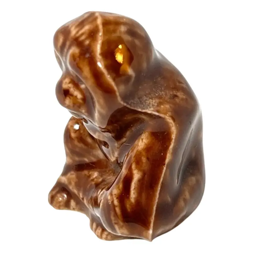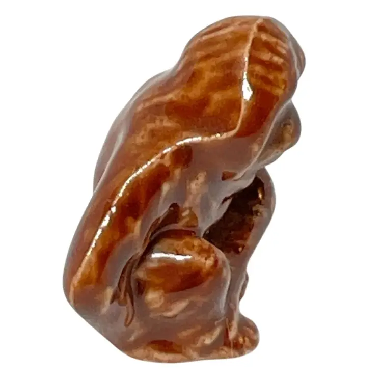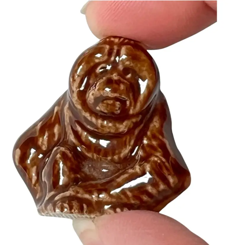 Wade Whimsy Orangutan 🦧 Ceramic Figurine. Cute Little Pottery Nature Animal. Lovely rich orange reddish brown color. Red Rose Tea Promotion. Stamped Wade England on the back rear. 1-1/4” x 1-1/4” x 3/4”. Condition: No chips or cracks. Notice last photo that the “Wade” is not stamped well and it’s glazed over so it’s a manufacturing defect.