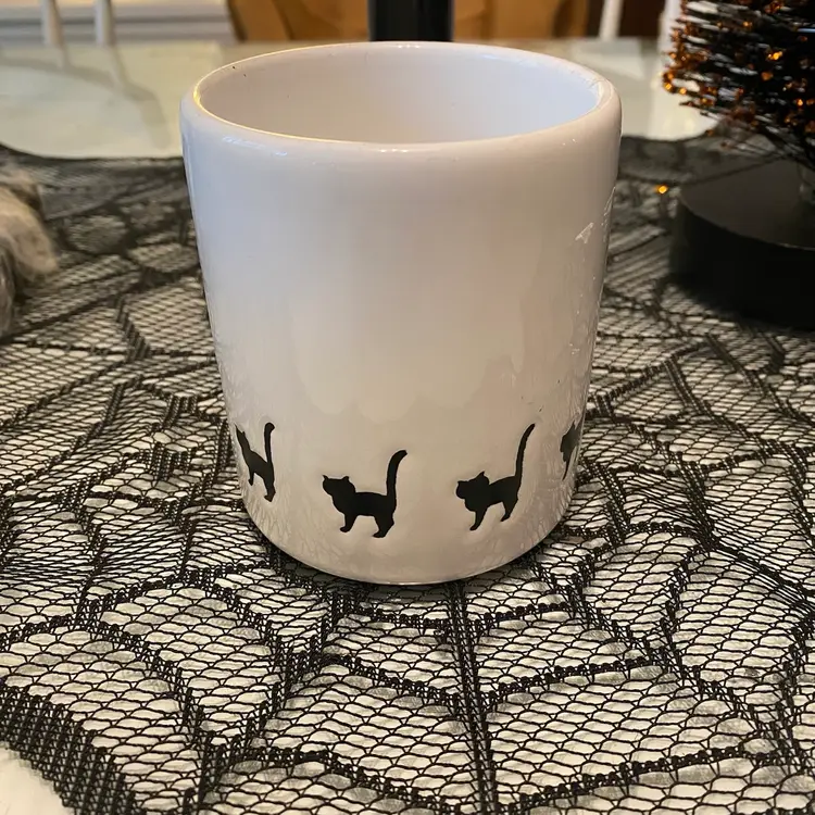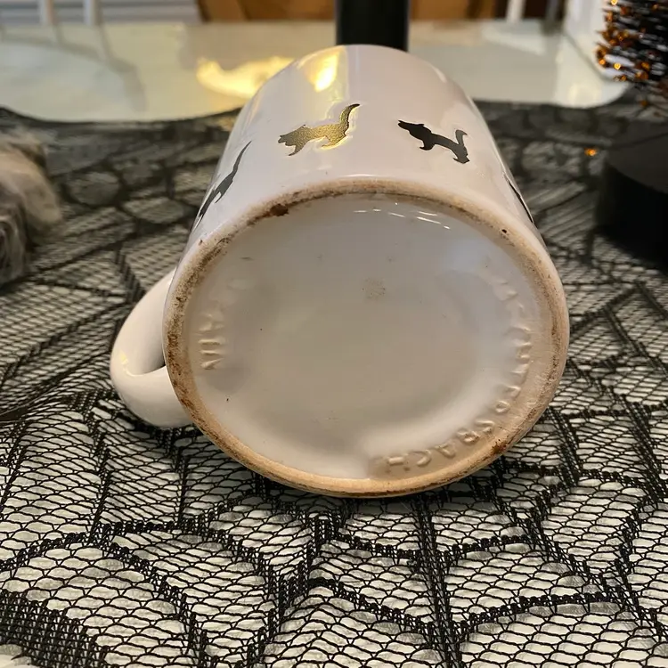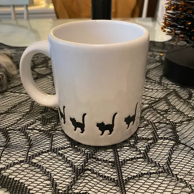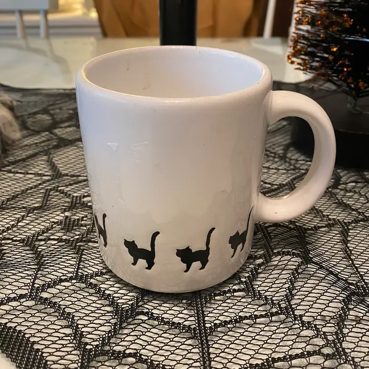 Waechtersbach Large 12 0z White Ceramic with BLACK CATS Halloween Spain. Tail Up