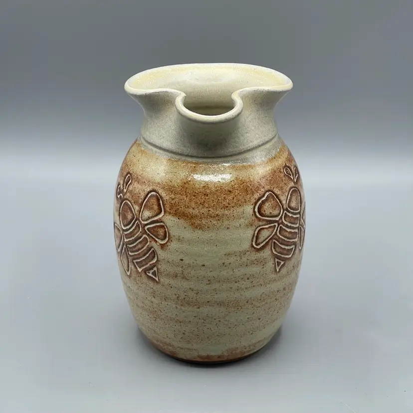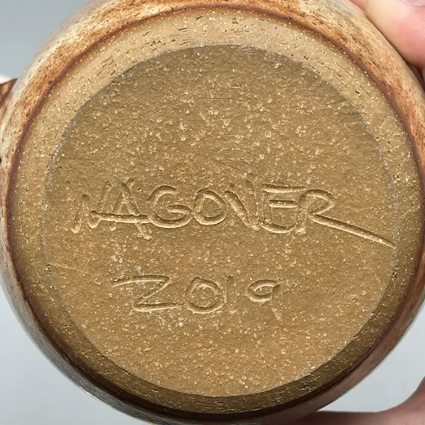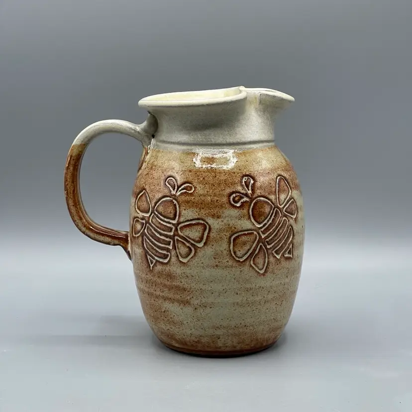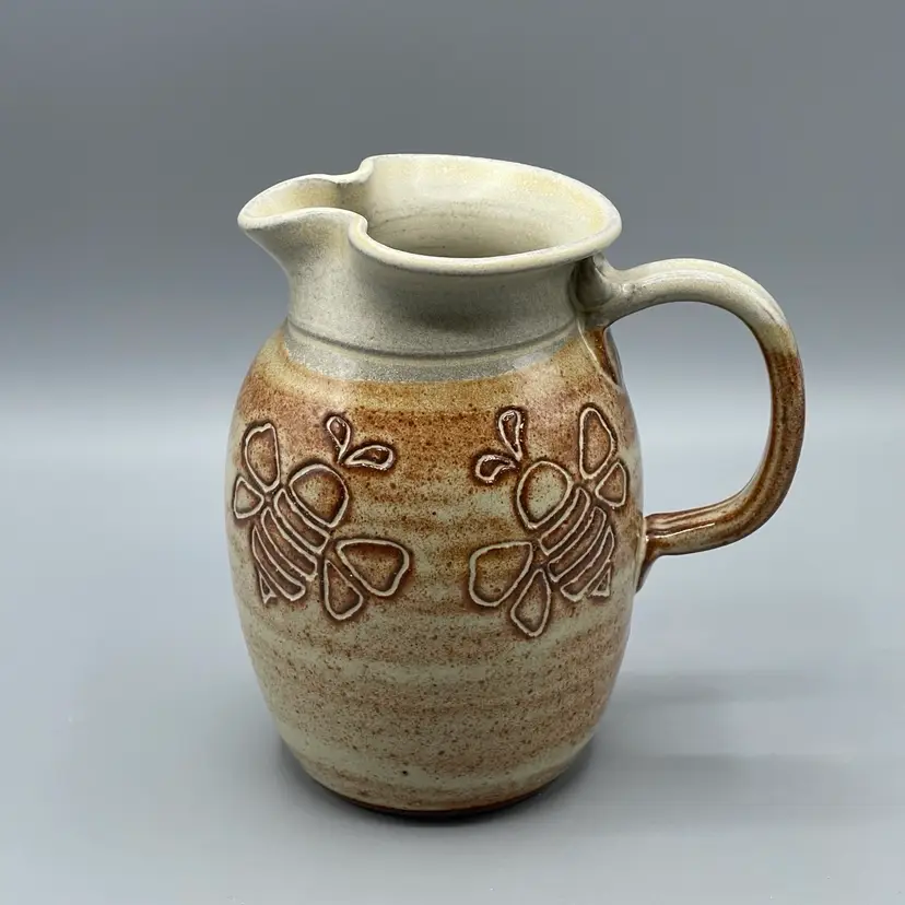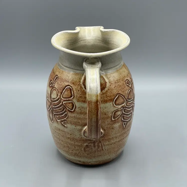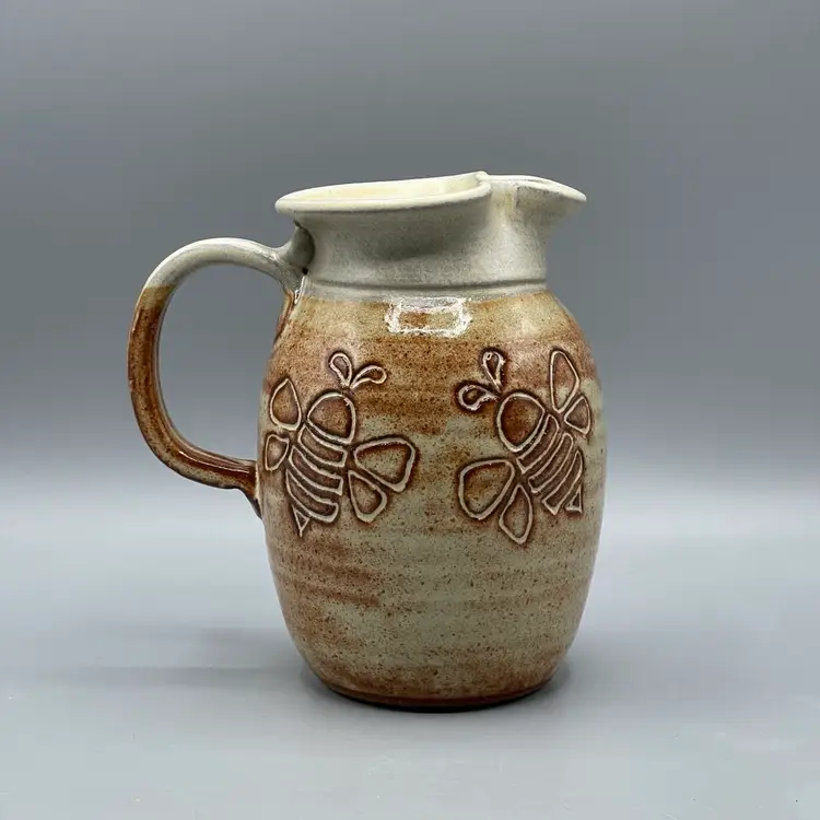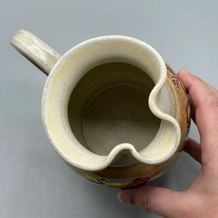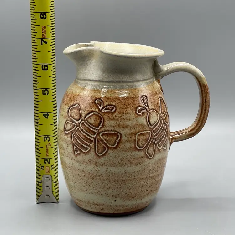 This charming pitcher is signed and dated. It has no chips or cracks and stands about 7 inches tall.