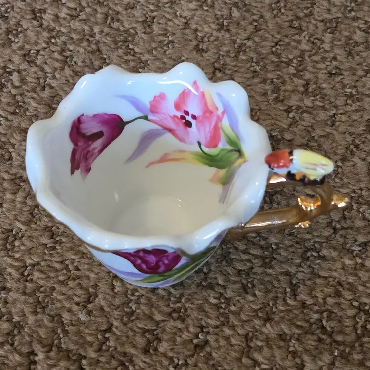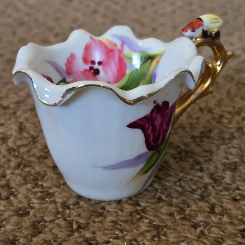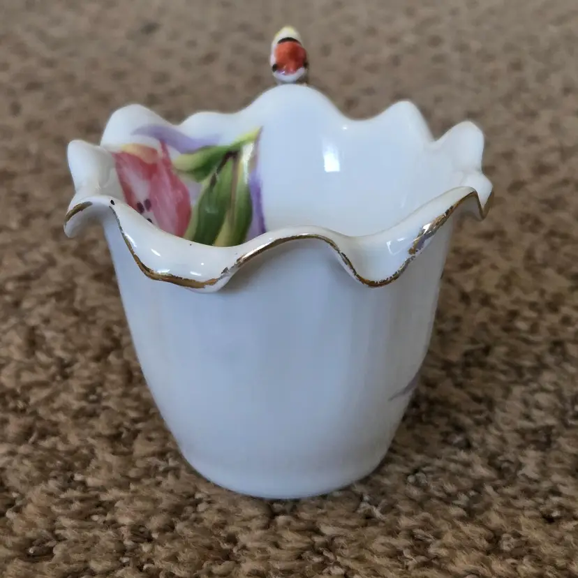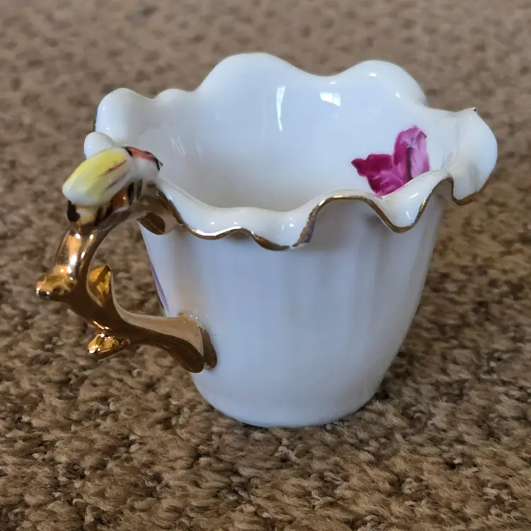 Wales China Small Cup with Bug Floral Hand Painted Japan made 2⅛" Tall Vintage. Used condition with no signs of extensive use. Please view all the photos and please ask any questions prior to purchase when possible.