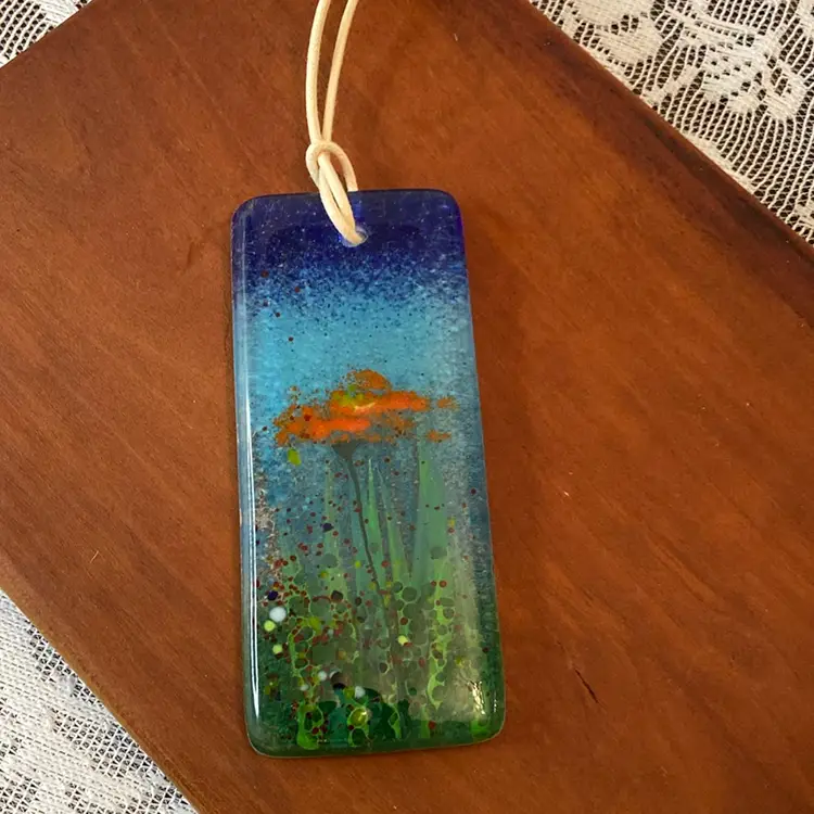 Beautiful floral fused art pass made in Wales. 4x1.75