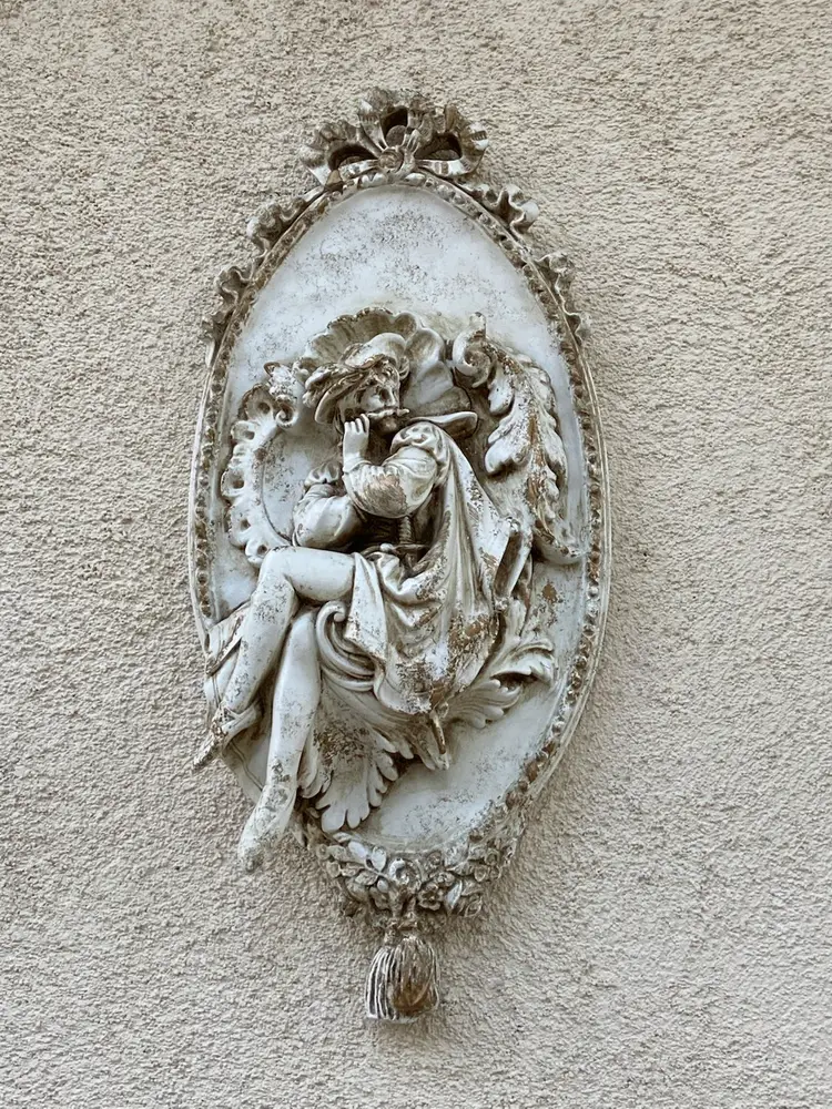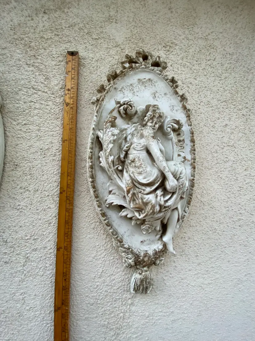 Measures about 9” wide and 21” in length. Easy to hang with hardware embedded I to the player on the back. No chips or cracks but surface is rustic and vintage look by design. Super cool set, will be heavy to ship and I’ve priced accordingly. The price includes both wall plaques.