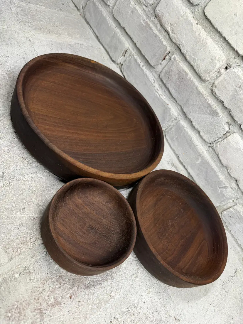 ✔ Handmade from solid walnut ✔ Smooth, rounded interior and edges ✔ Nests neatly for compact storage ✔ Food-safe finish ✔ Made in Indiana, USA ✔ Modern rustic / minimalist design