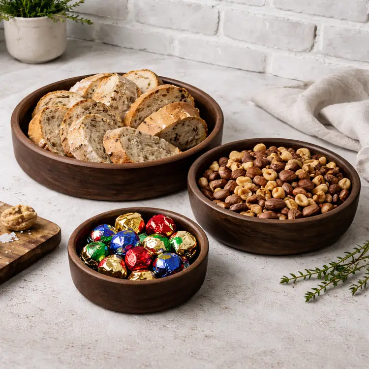 • Serving dry snacks (nuts, crackers, fruit) • Decorative candle holders (tealights or small candles) • Catch-all bowls for keys, jewelry, or coins • Coffee table, kitchen, or shelf decor