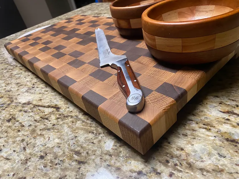 -Solid Walnut, Maple, and White Oak end-grain construction