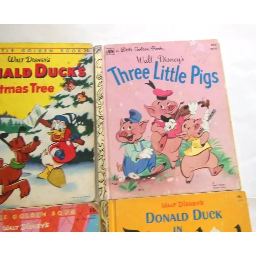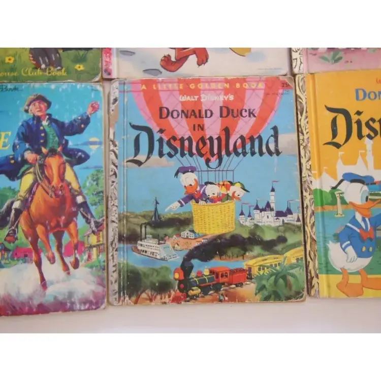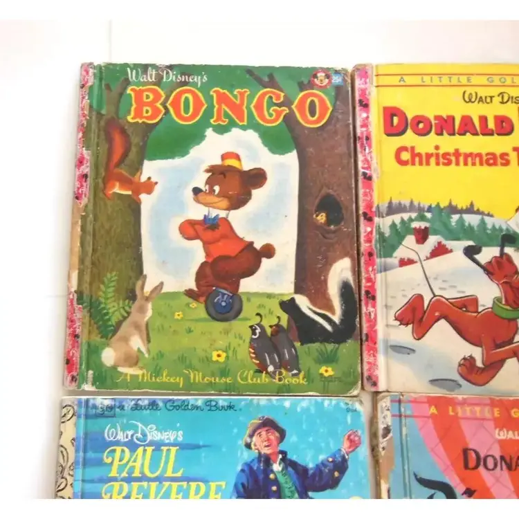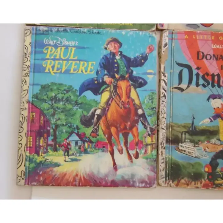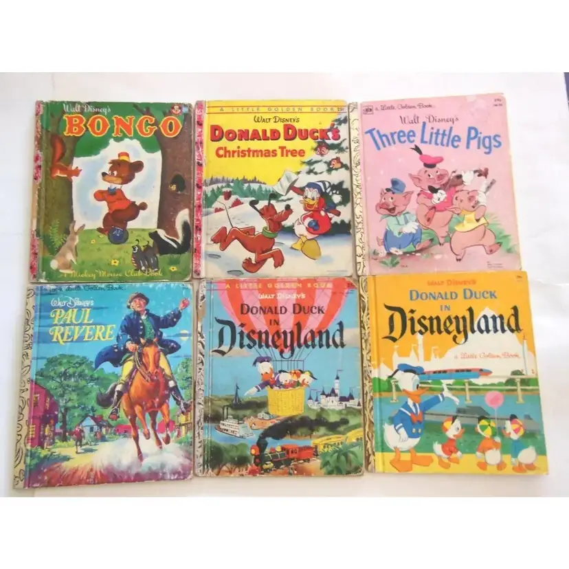 This lot of 6 Little Golden Books featuring beloved Disney stories and characters from the 1940s-1960s, is a must-have for any Disney fan or collector. These vintage books were made in the United States and include stories featuring, sought-after 2 Disneyland titles, Donald Duck, Paul Revere, Bongo, Huey Duey and Louie, Pluto and the Three Little Pigs. The pages are filled with colorful illustrations and heartwarming stories that will transport readers back to a simpler time. Whether you're a fan of classic Disney, or simply love vintage collectibles, this lot of Little Golden Books is sure to bring a smile to your face. Condition is good and each book varies, so please see all pics, as they are part of the description.