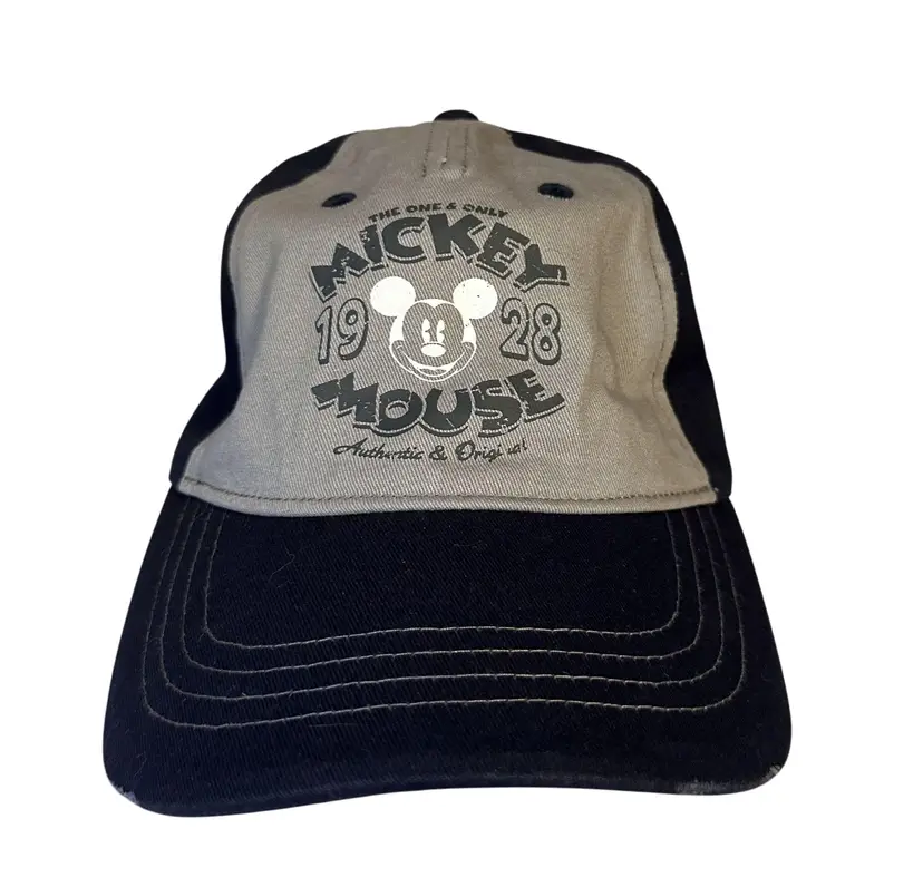 Walt Disney Parks Mickey Mouse Cap The One & Only 1928 Hat Factory Distresse Black Adult VGC