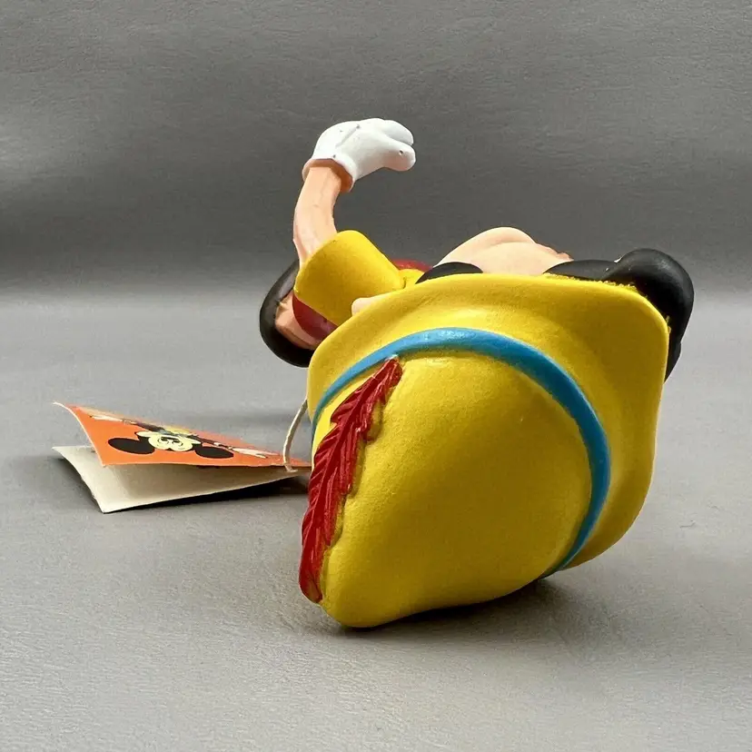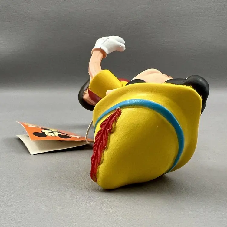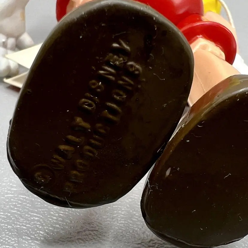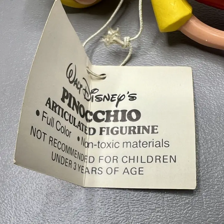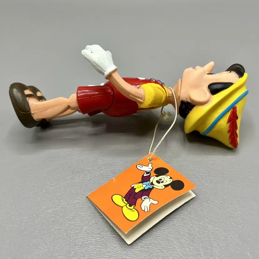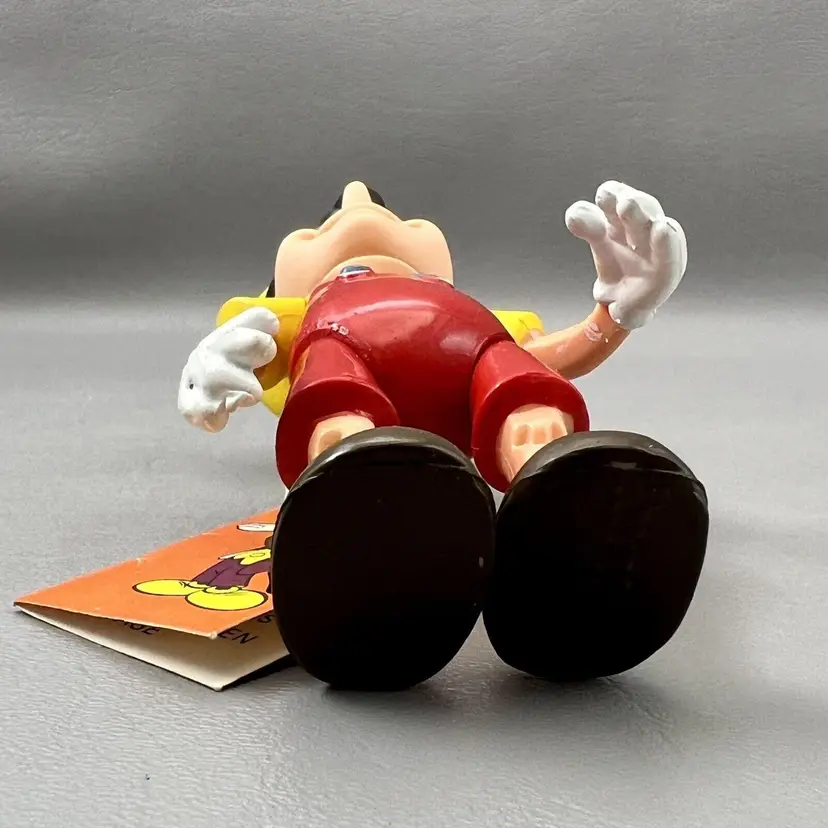 Add this vintage Walt Disney Productions Pinocchio articulated figure to your Disneyana collection. Standing at 5.5 inches tall, this Hong Kong made figure captures all the charm and whimsy of the beloved character. With intricate articulation, this Pinocchio figure is perfect for display or play. Don't miss out on the chance to own a piece of Disney history.