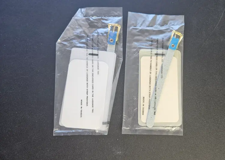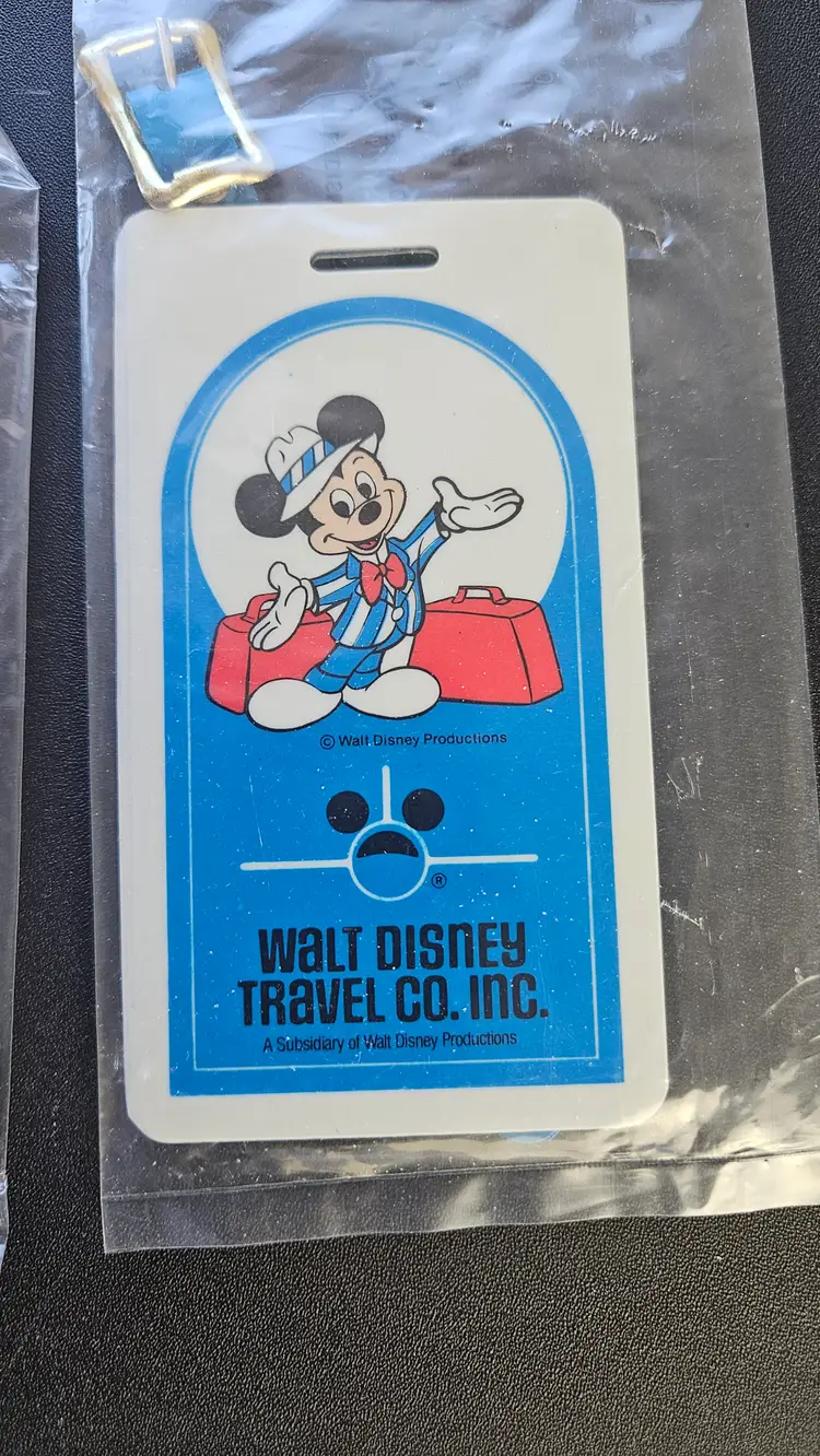 Set of 2 vintage luggage tags from Walt Disney Travel Company. Unopened. No dates. Made in Taiwan. Both feature Mickey Mouse and the Walt Disney insignia.