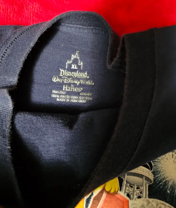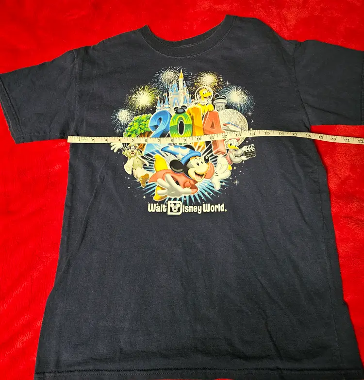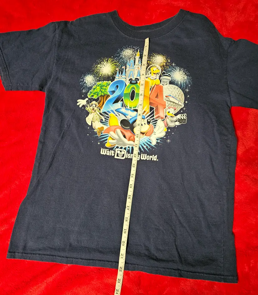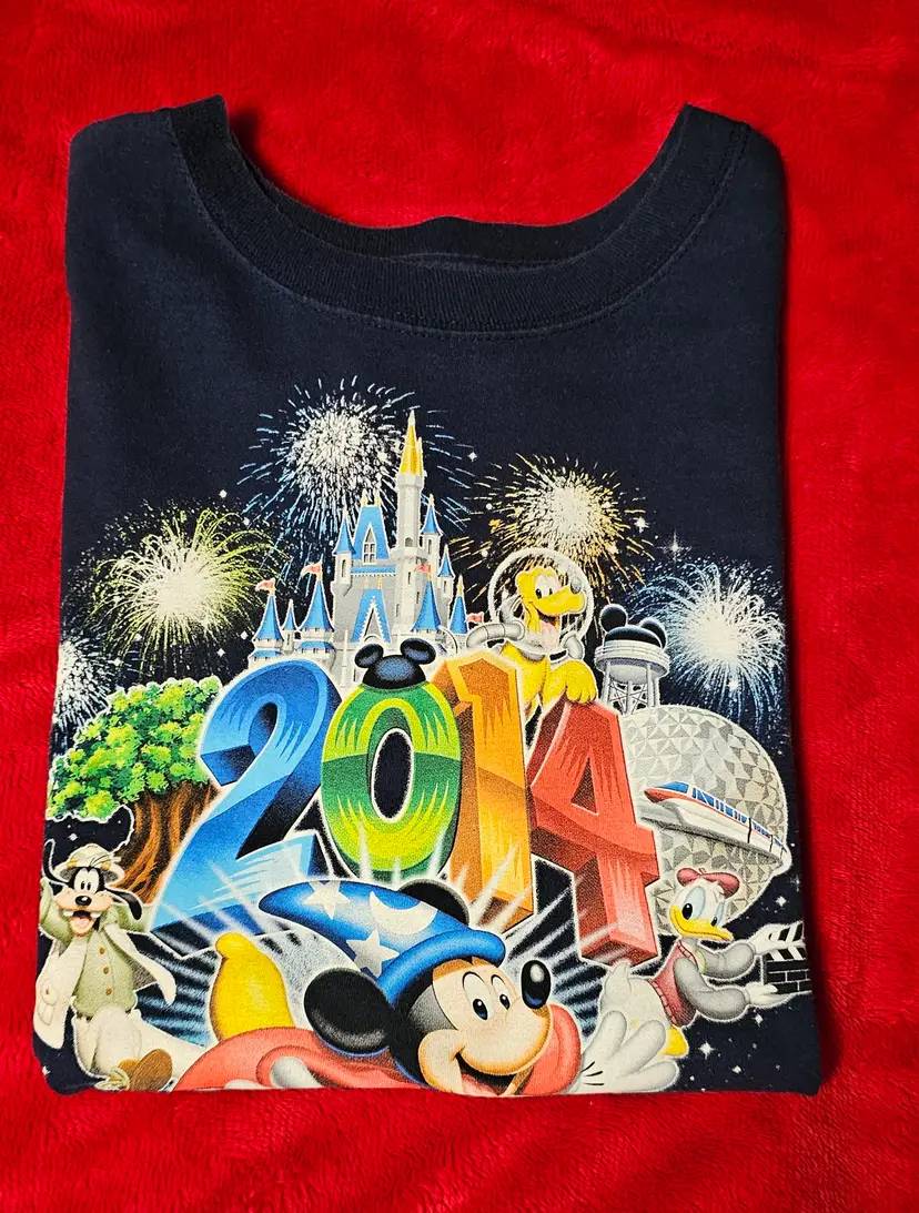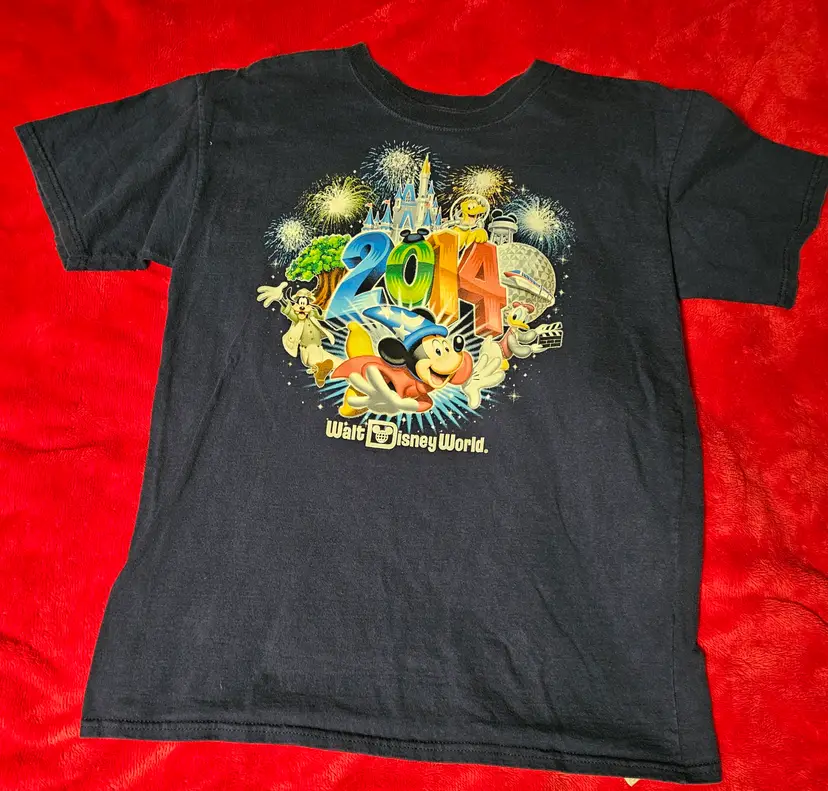 This Walt Disney World 2014 T-Shirt in size XL is a collectible item featuring the iconic Mickey Mouse character. The shirt, suitable for adults of any gender, showcases a colorful design inspired by the Disney franchise. Made by Disney themselves and manufactured in Honduras, this shirt is a nostalgic piece from the beloved Disney World theme park. Perfect for fans of Disney and collectors of contemporary Disneyana, this shirt is a must-have for anyone looking to add a touch of magic to their wardrobe.