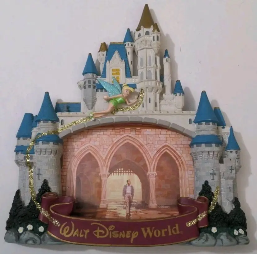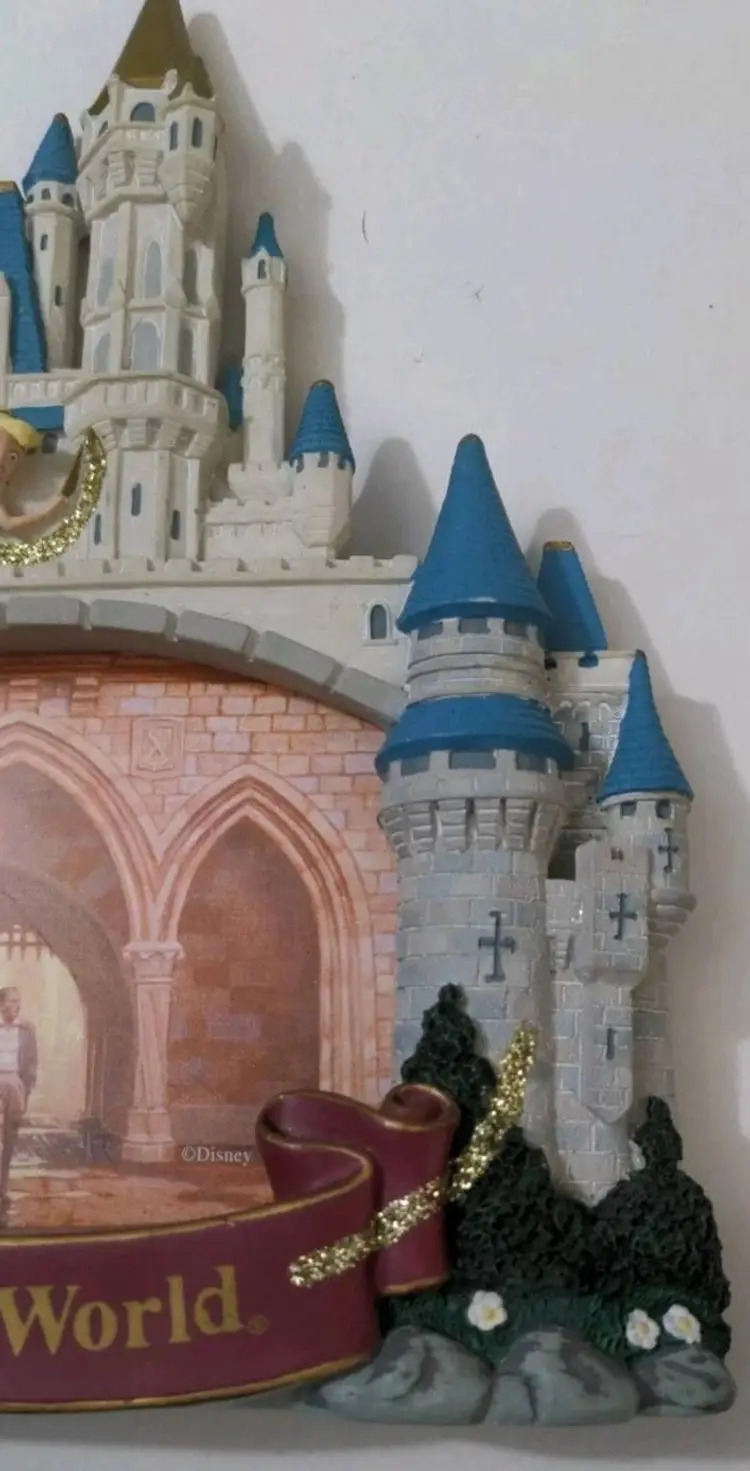 Walt Disney World Castle Picture Frame Tinkerbell Home Decor Pre owned with damage to 2 of the towers. Please view pictures carefully.