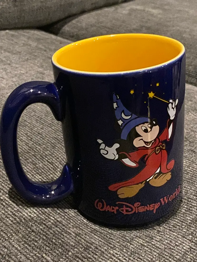 Walt Disney World Sorcerer Mickey Mouse Fantasia Blue/Yellow 18oz Coffee Mug