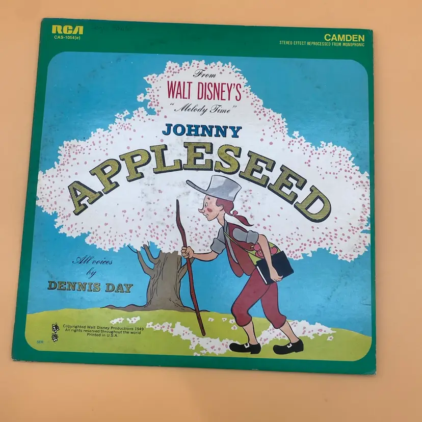 You are purchasing one Johnny Appleseed & Pecos Bill Vinyl Record by Walt Disney and RCA from 1949. This record is in overall good condition. Minimal signs of wear on the vinyl, no significant scratches. No sleeve. See final images for a name and signs of discoloration on the jacket.