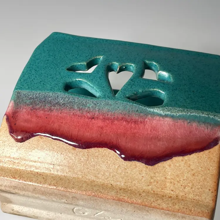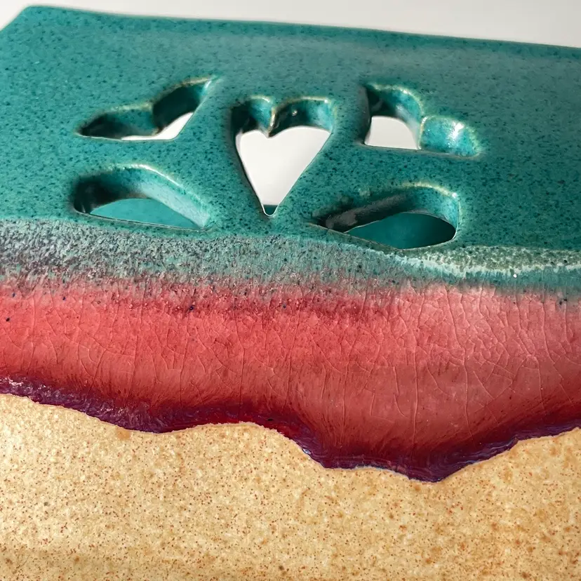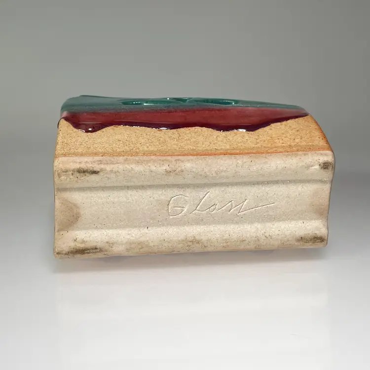 Very Good Preowned - subtle signs of wear or use. No chips or cracks. Crazing to the raspberry drip glaze.
