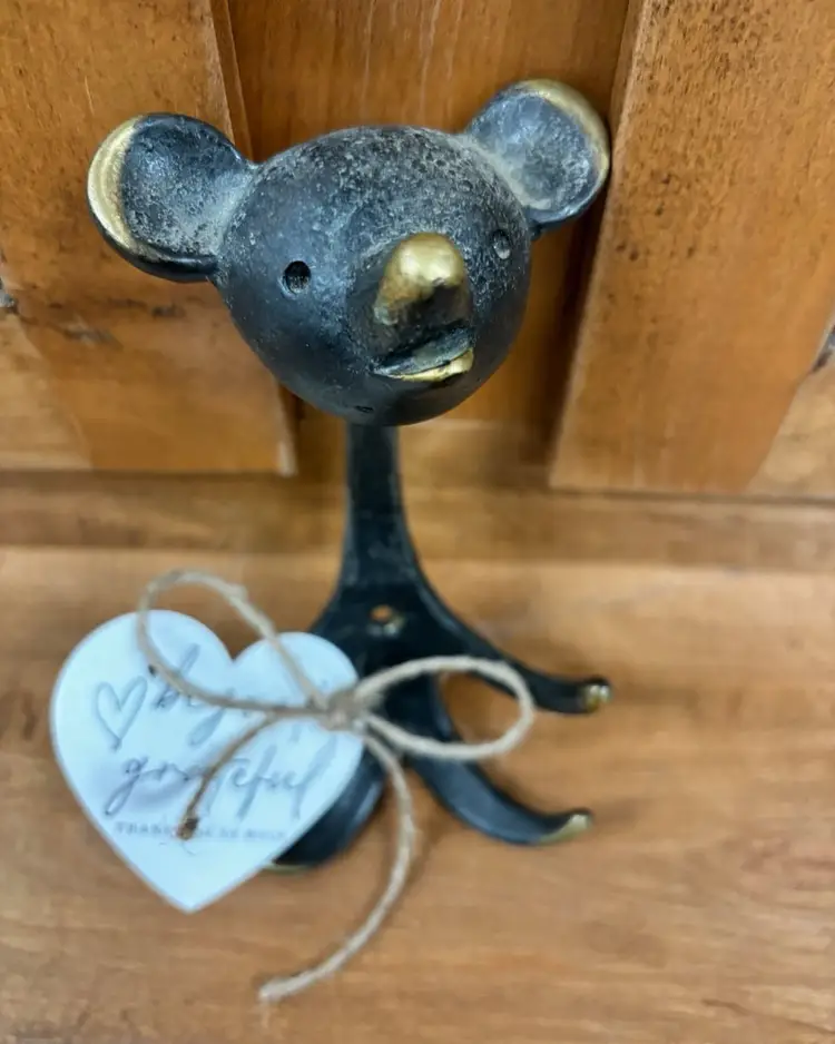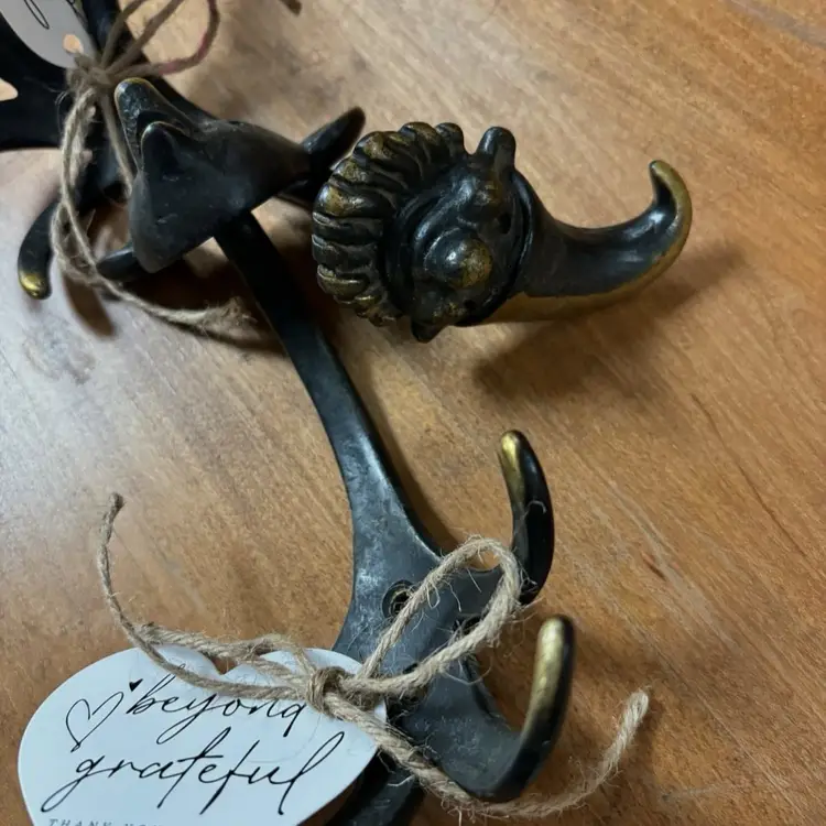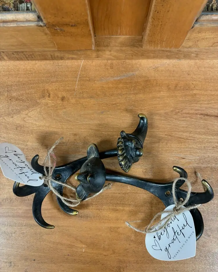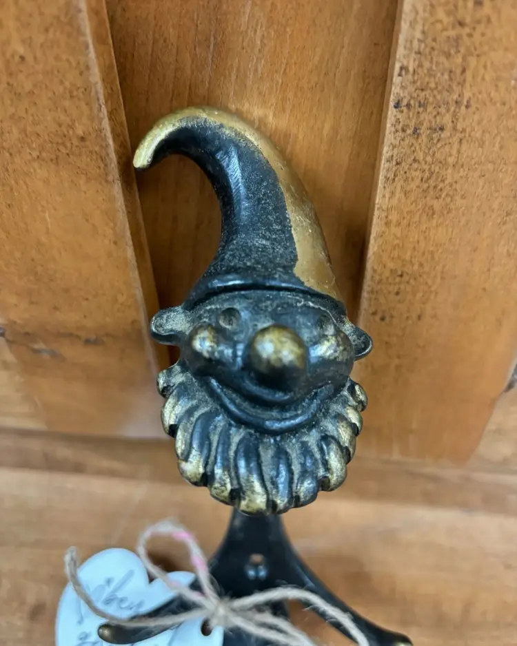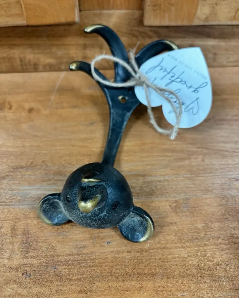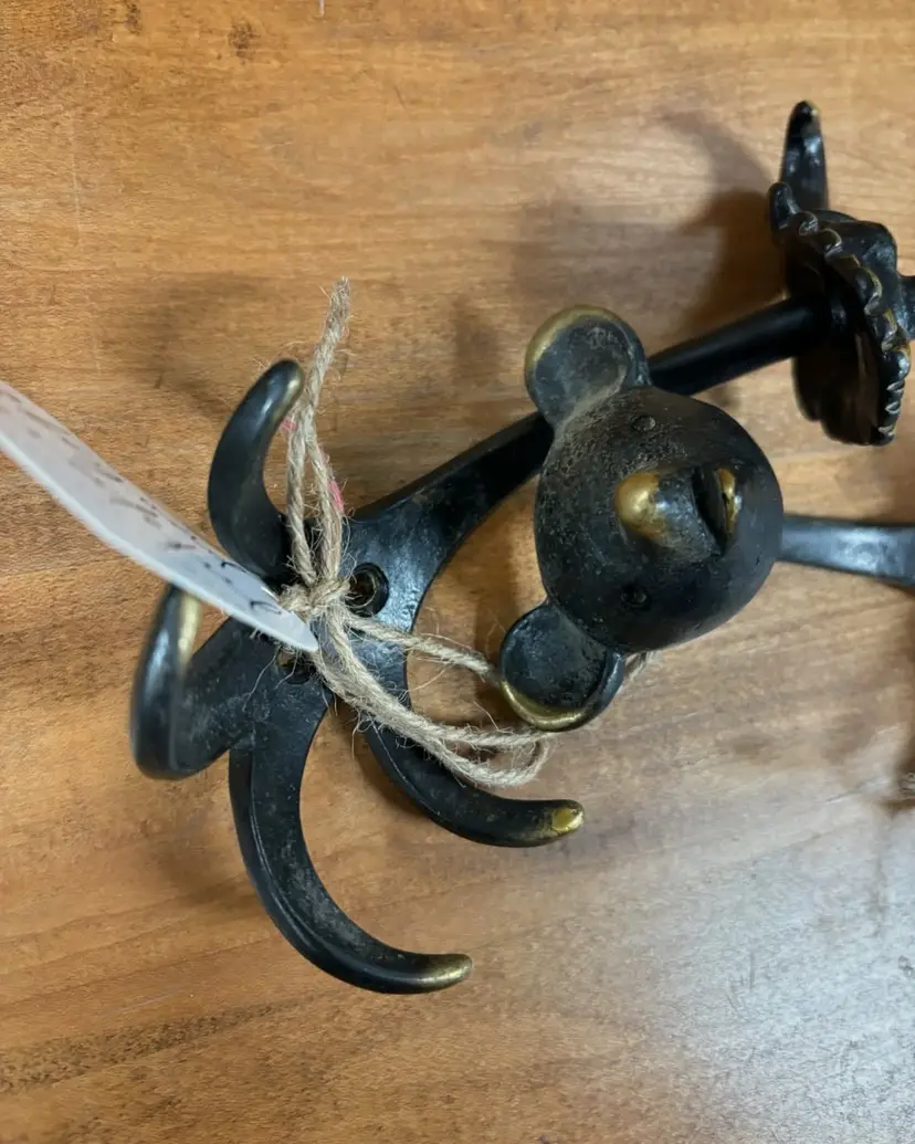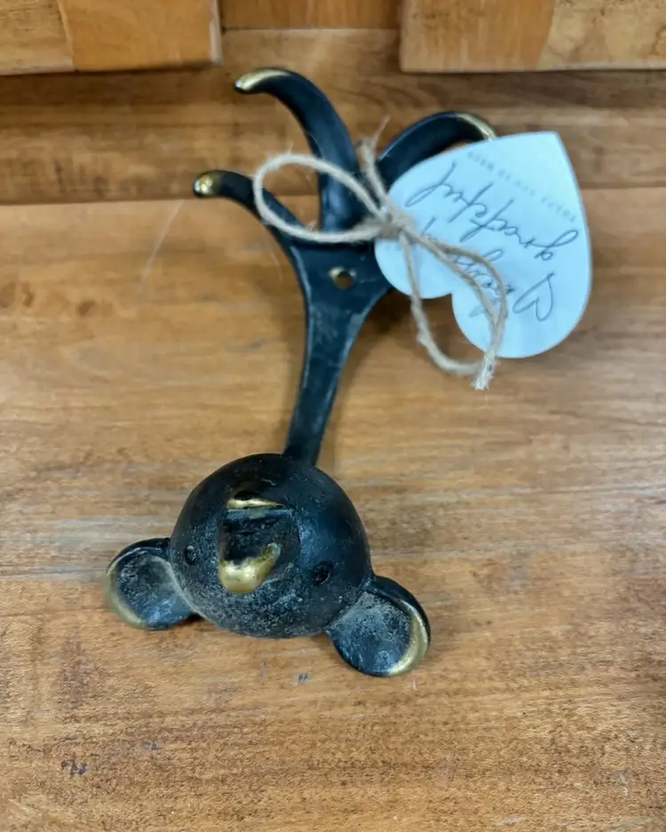 1950’s Black Finished Brass Dwarf & Bear Coat Hooks Designed By Walter Bosse For Herta Baller MCM Decor at its finest Approximately 7.5” Tall 4” Wide Dwarf Approximately 7” Tall 4” Wide Bear Approximate weight 2lbs