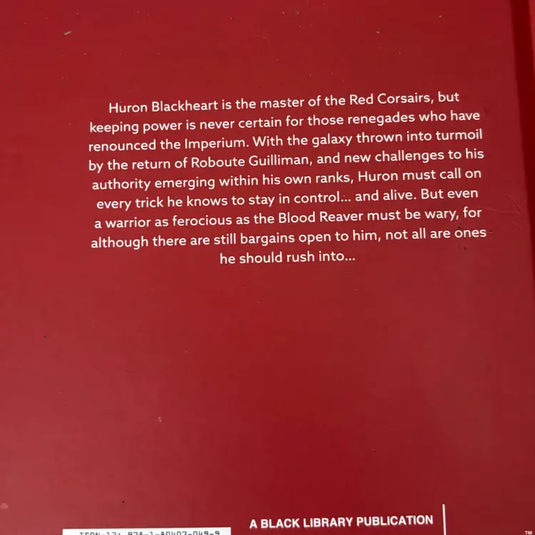 This is a Warhammer 40,000 hardcover novel titled Huron Blackheart: Master of the Maelstrom, written by Mike Brooks. It's a Black Library publication from 2022. Great for Warhammer fans and collectors!