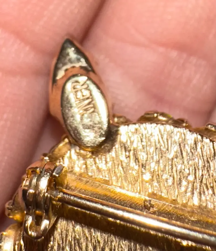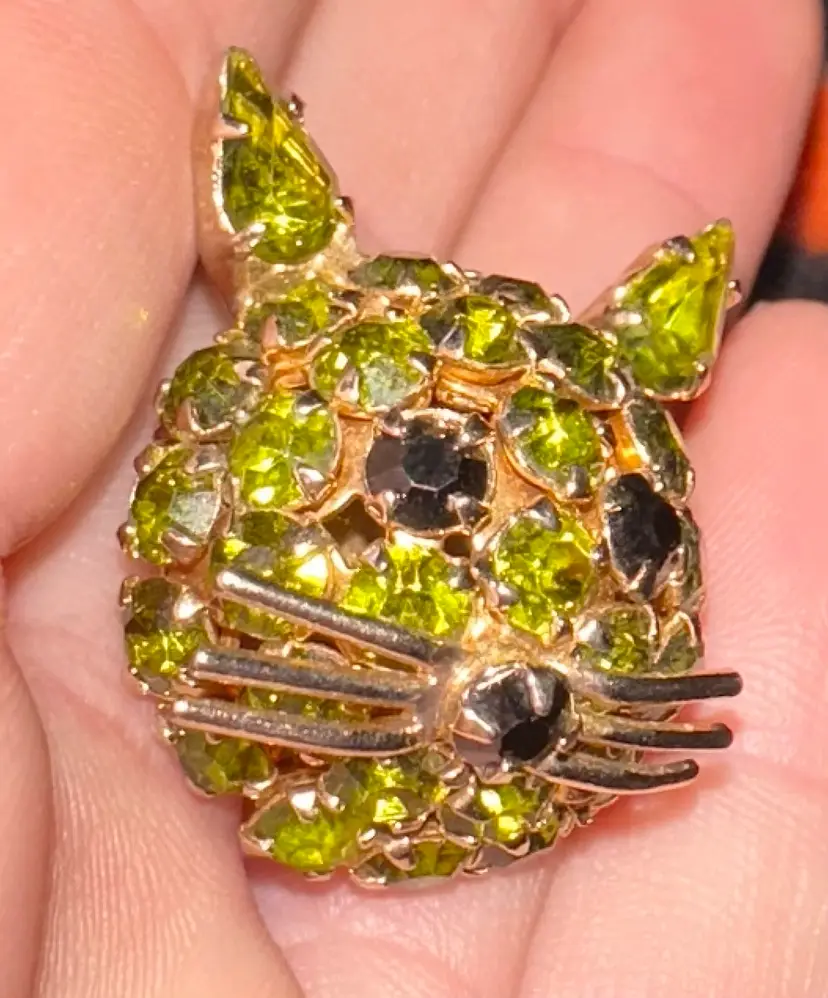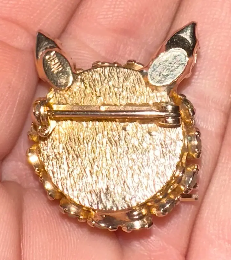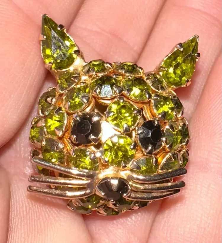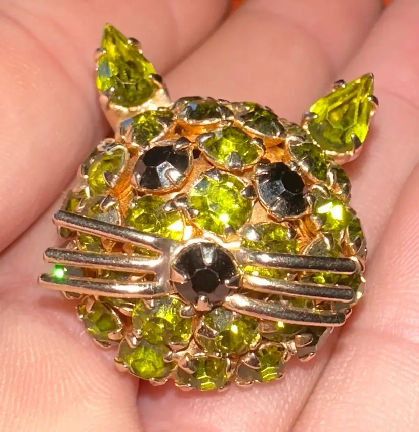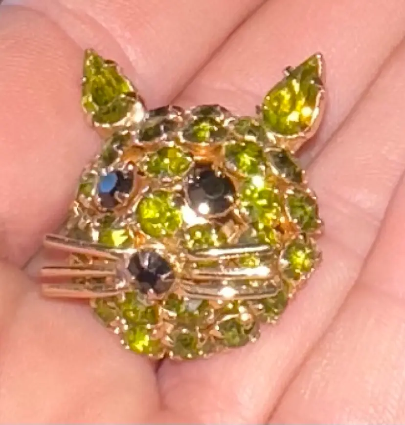 Absolutely stunning is this Warner AB Rhinestone Gold Tone Cat Face Brooch Pin Vintage
