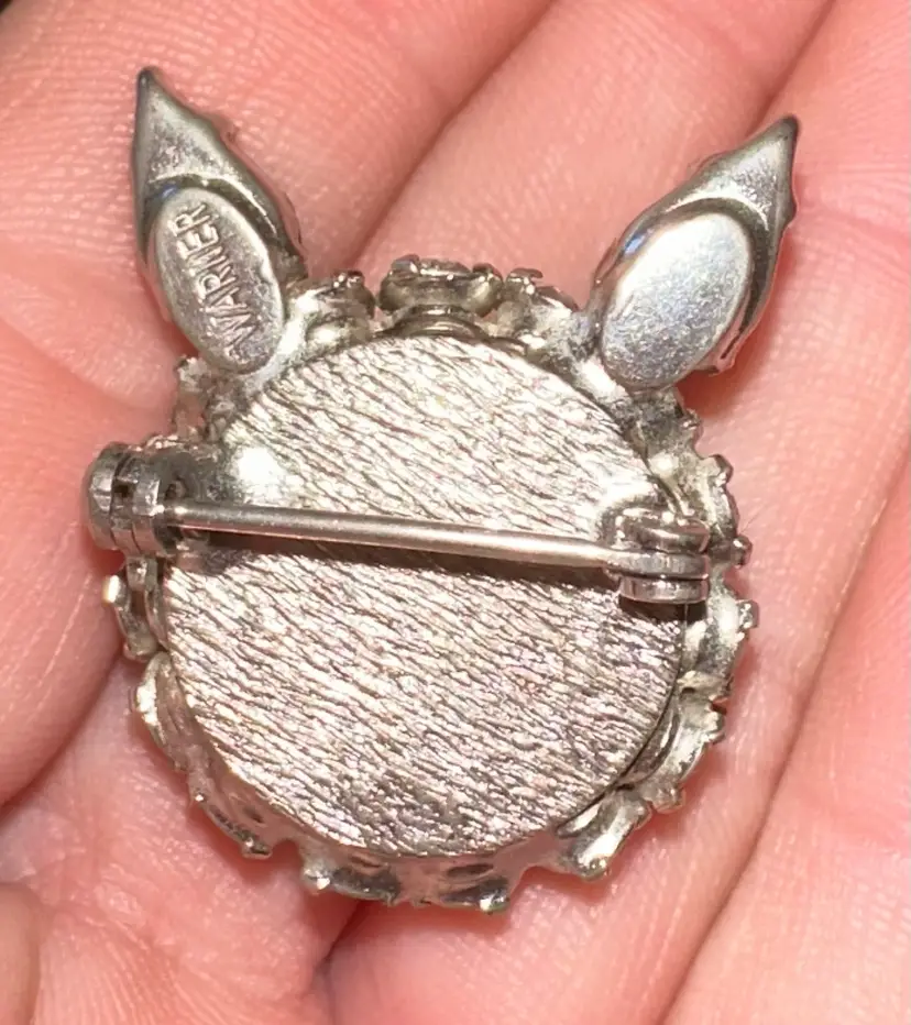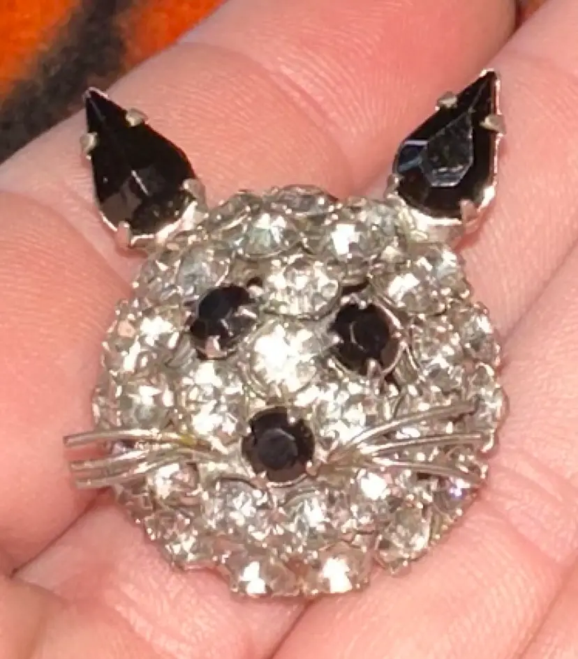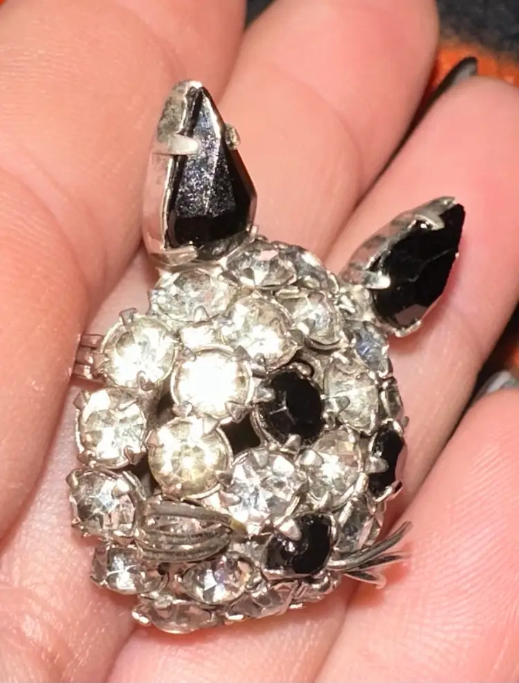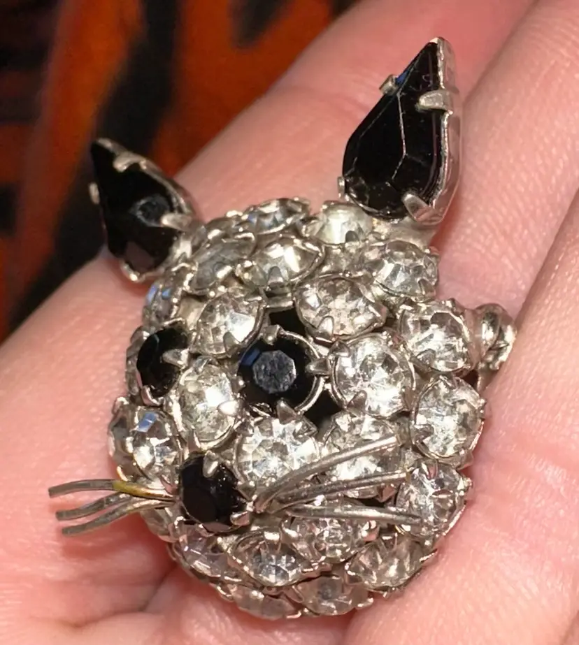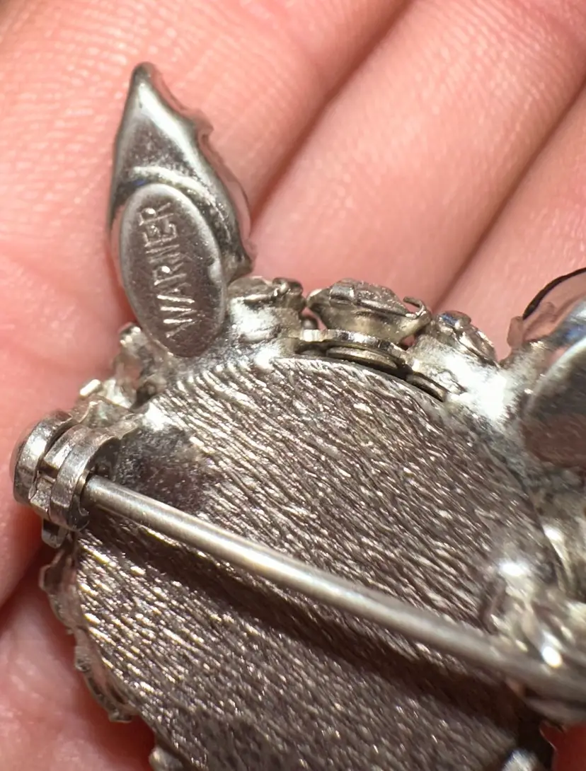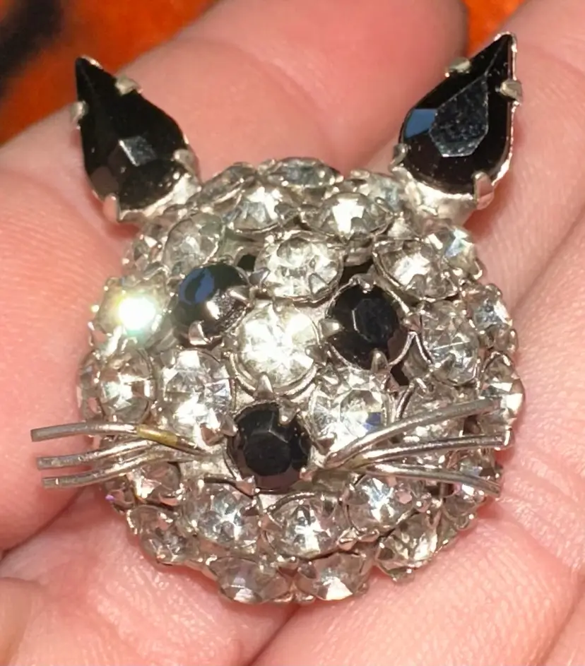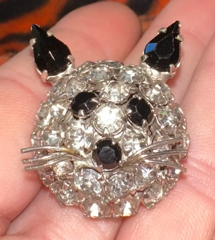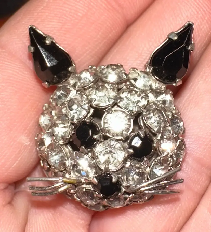 Absolutely stunning is this Warner AB Rhinestone Silver Tone Cat Face Brooch Pin Vintage