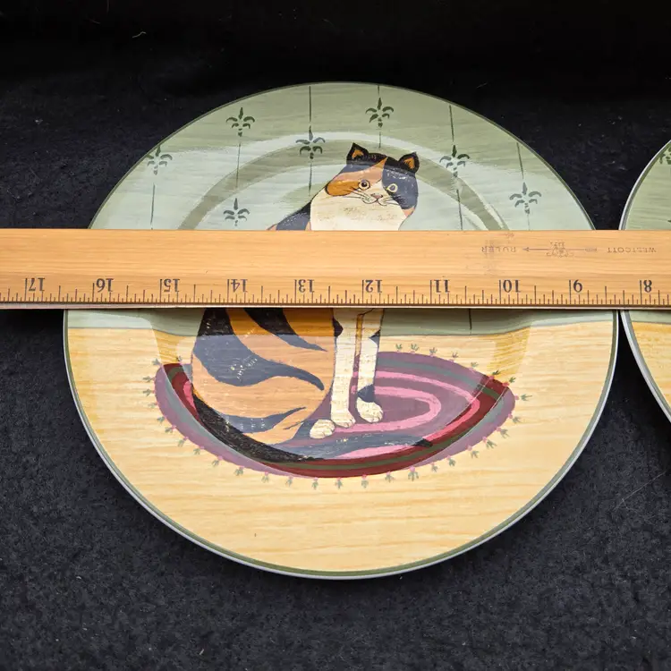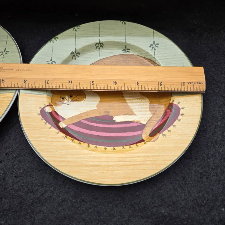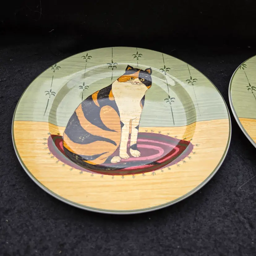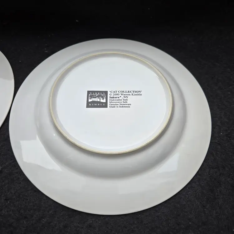 Warren Kimble Sakura Oneida Cat Collection Salad Plates (set of 2) Vintage 2000. Size is 8¼" Diameter. Used condition with no apparent signs of use other than some dirt from handling. Please view all the photos and please ask any questions prior to purchase when possible.