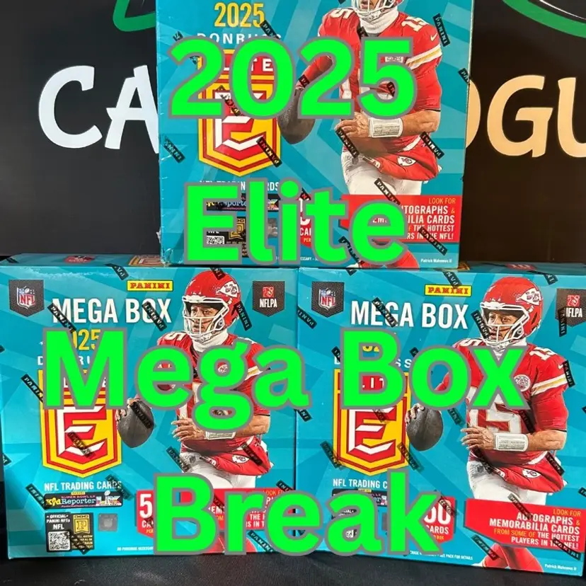 Team Auction Will be Breaking: 3-2025 Elite Football Mega Boxes. TEAM Auction Break (you are bidding on team shown). Rip will happen on Dibdit Cards District Community immediately following the last team auction. US Shipping is $5 for your first spot, $.25 each additional spot you win. Shipping will be within 1 week after the break to account for progressive shipping. Please notify me if you would like us to ship immediately. Any spot won where no cards of the team are found in the boxes that are opened, will receive a player card or cards of the same sport. Any multi-team base cards will be divided as evenly as possible between subjects on the card; any multi-team HITS (serial #'ed or dual/triple autos or relics) will be assigned by draw to one participant from the participants who own the depicted teams/players.