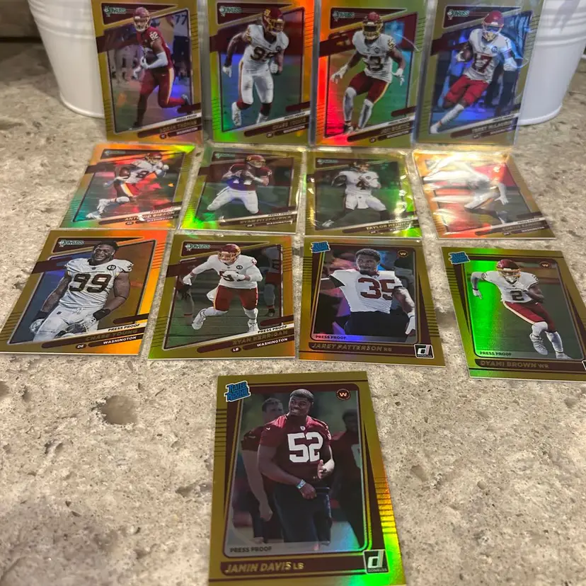 Donruss complete Washington Commanders Team Set Press Proof Gold Premium Stock 2021 (first year premium press proof stock gold) will ship BMWT ($5). Progressive shipping of $.25 per item.
