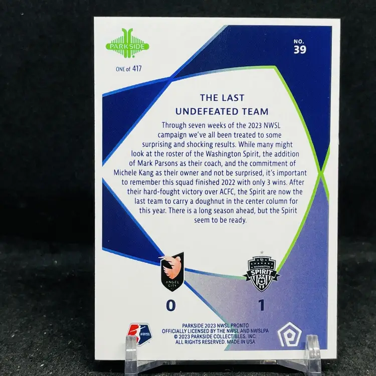 Card Size: Standard Autographed: No Type: Sports Trading Card Sport: Soccer Manufacturer: Parkside Product: Single Year Manufactured: 2023 Team: USWNT, Washington Spirit Player/Athlete: Washington Spirit Card Number: 39 Season: 2023 Country/Region of Manufacture: United States