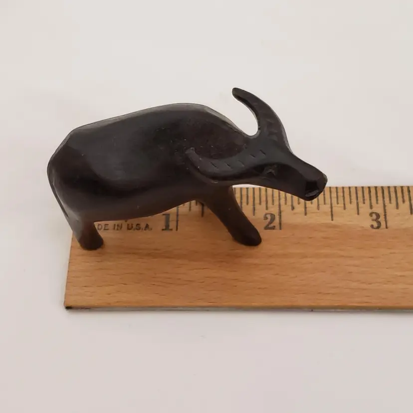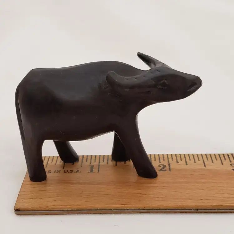 Water Buffalo Figurine Hand Carved Wood Unbranded 2½" Long 1⅝" Tall Approximately. Used condition with some scratches, nicks, dirt, etc. Please view all the photos and read the entire item description and look at all the photos and please ask any questions prior to purchase when possible.