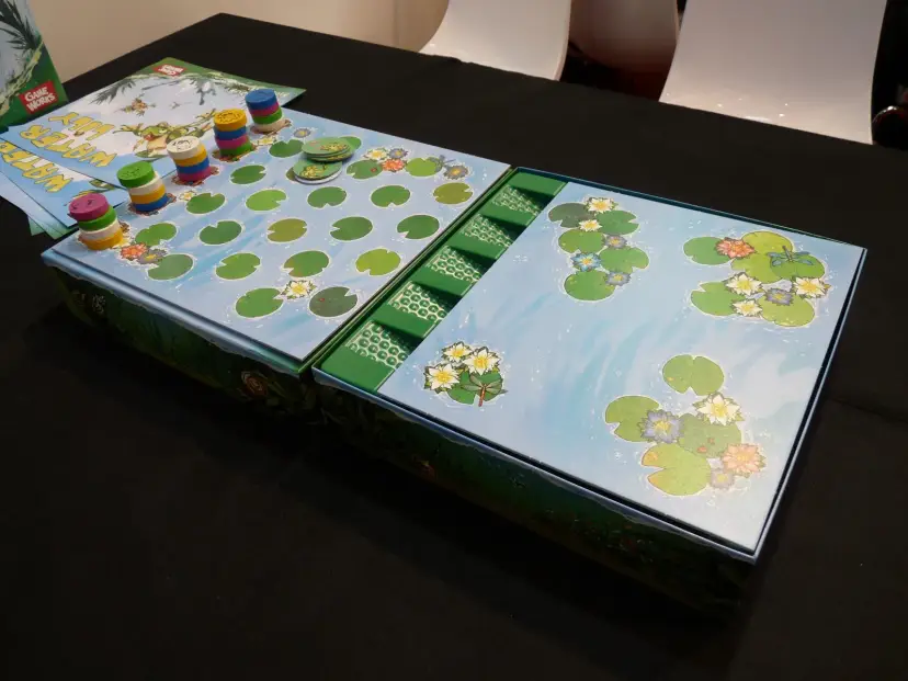 Princess Water Lily and her sisters are to be wed! Frogs from all the Kingdom have heard the news and want to take part in the Royal Race, because the winners will marry them and become Princes! But it's a tricky race: hopping forward too fast will get you only a few points, and arriving too late no points! Water Lily is a suspenseful short race game from acclaimed designer Dominique Ehrhard (Marrakech, MacGregor, Crazy Circus, Serenissima, Condottiere...), a blend of bluff, tactical moves and some luck.