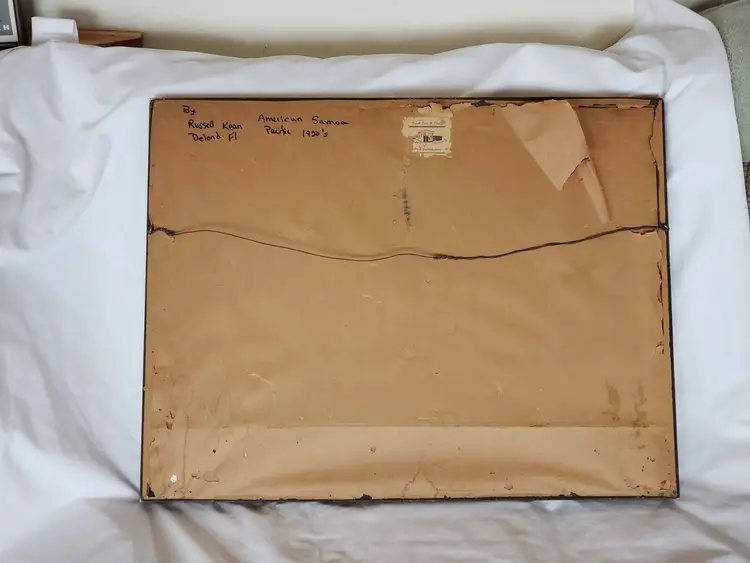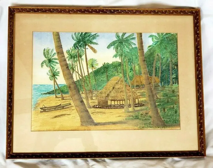 Type: Painting Signed By: Russell Kean (?) Original/Licensed Reproduction: Original Signed: Yes Medium: Watercolor Material: watercolor Production Technique: Watercolor Painting Framing: Matted & Framed Country/Region of Manufacture: United States Subject: Island Beach American Samoa