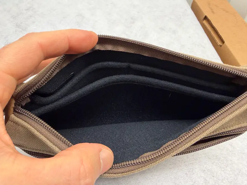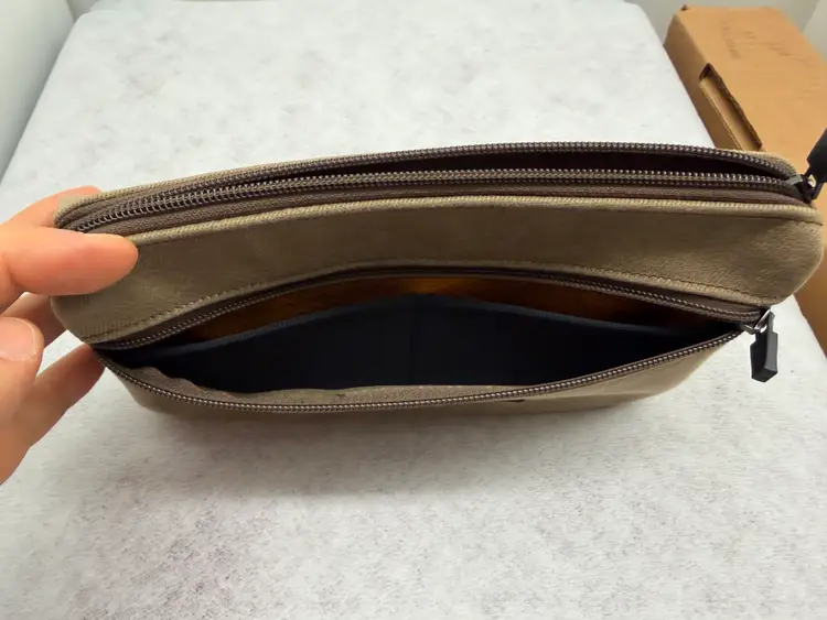 As I tend to baby all of my items, this pouch looks great. Almost no wear and tear at all. It measures approximately 10 1/2“ x 5 1/2“ x 1 3/4”.