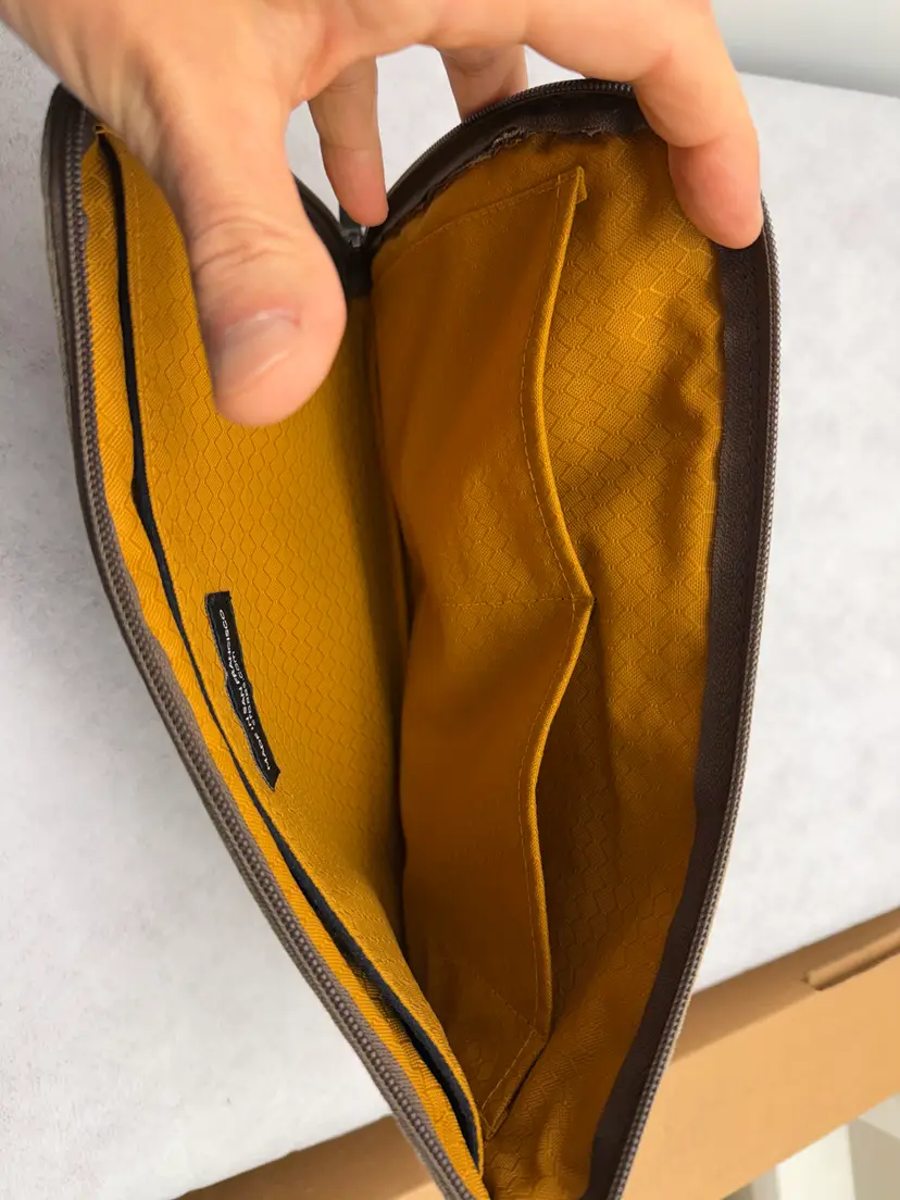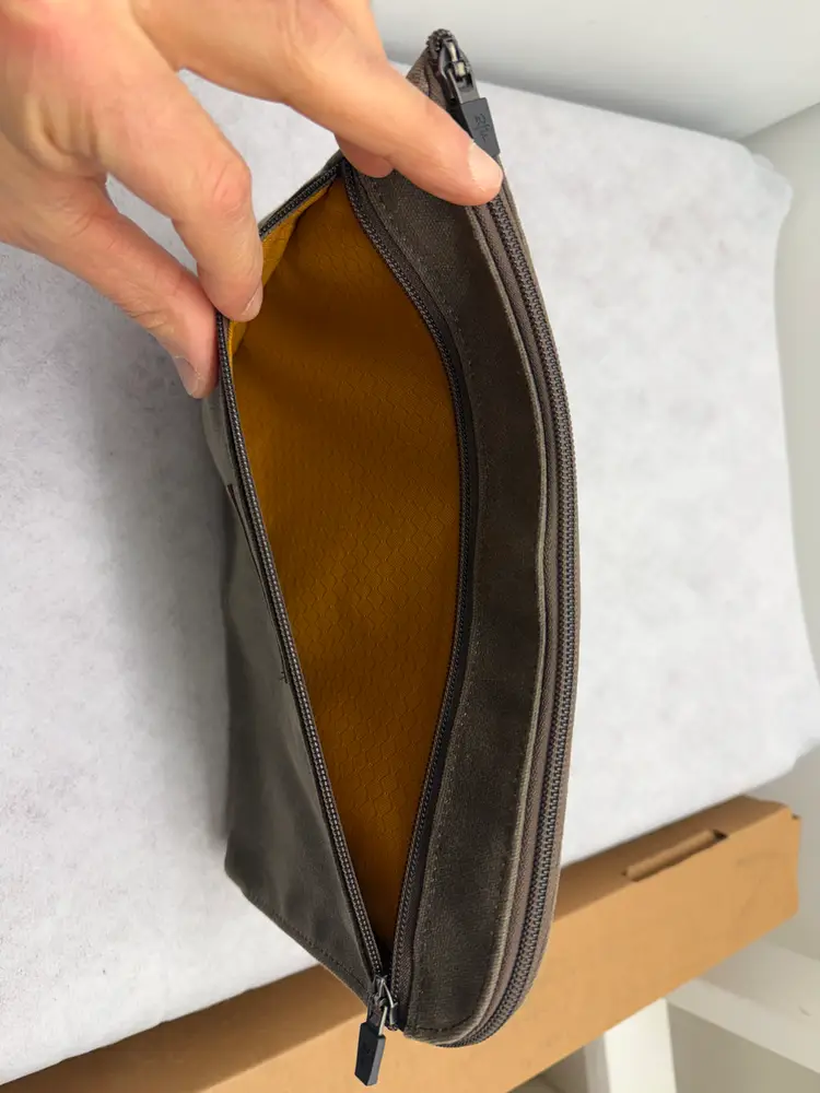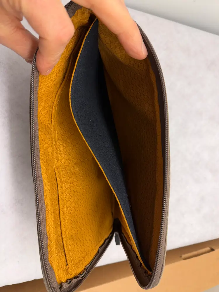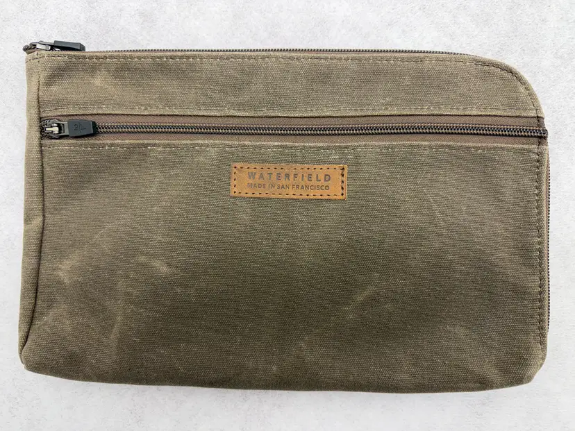 Tack pouch that fits an 11 inch iPad plus other tech accessories. Great for putting in the pocket in the seat back in front of you on an airplane.