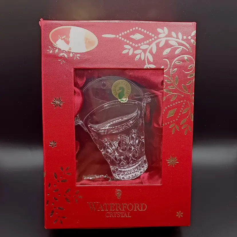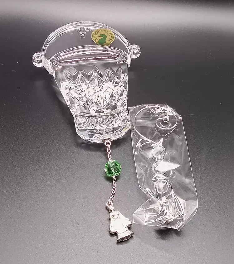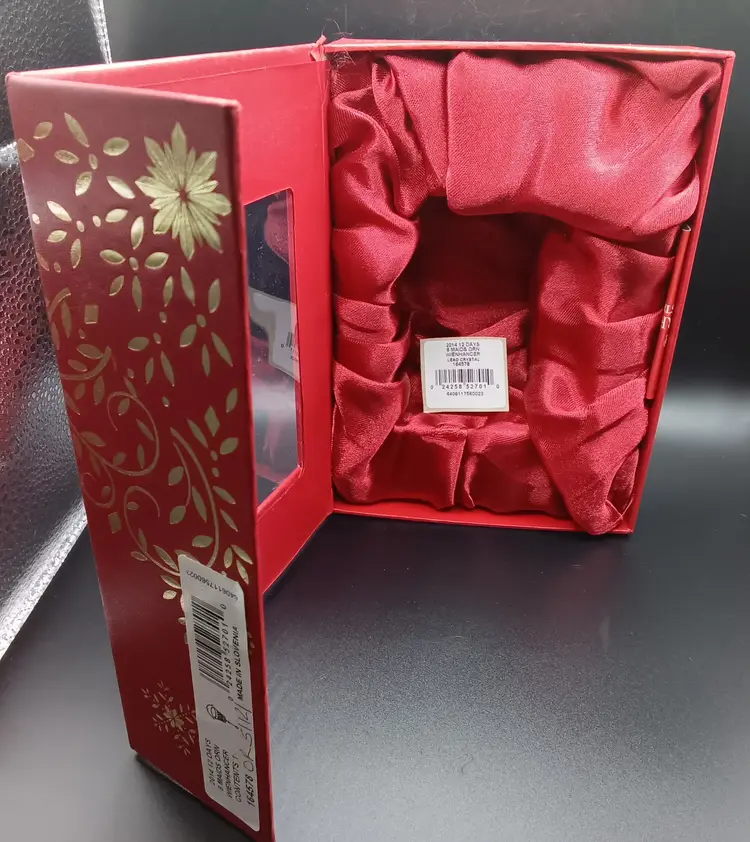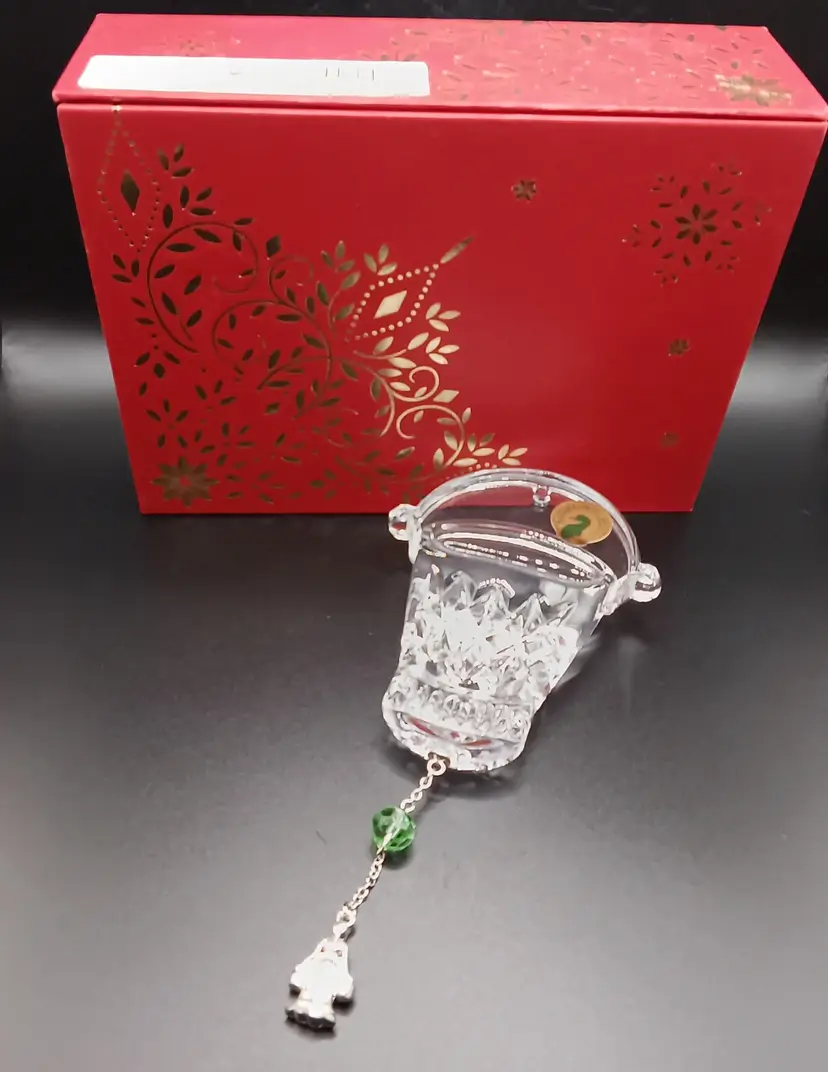Beautiful crystal ornament with red velvet pouch and enhancer (hanger) with clear crystal beads & removable date tag. Comes in original box with labels. Ornament is approx. 4 inches Enhancer is approx. 3 inches
